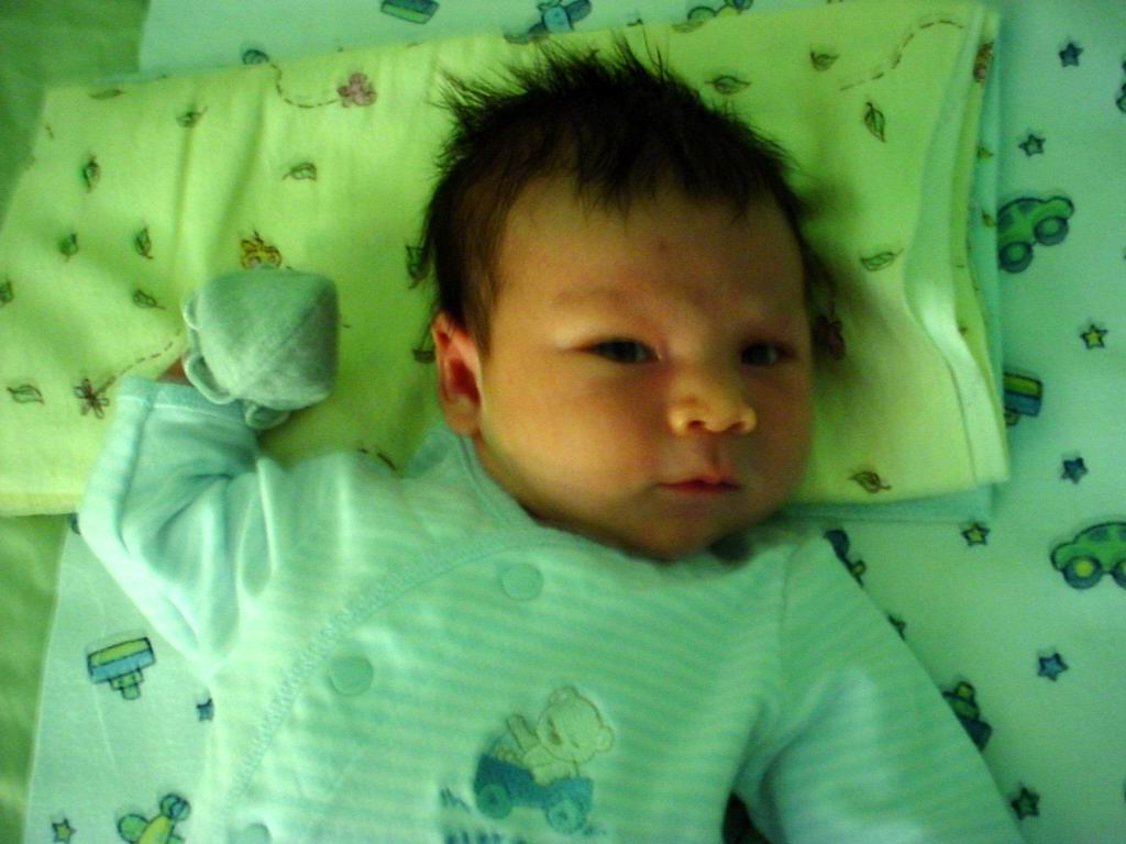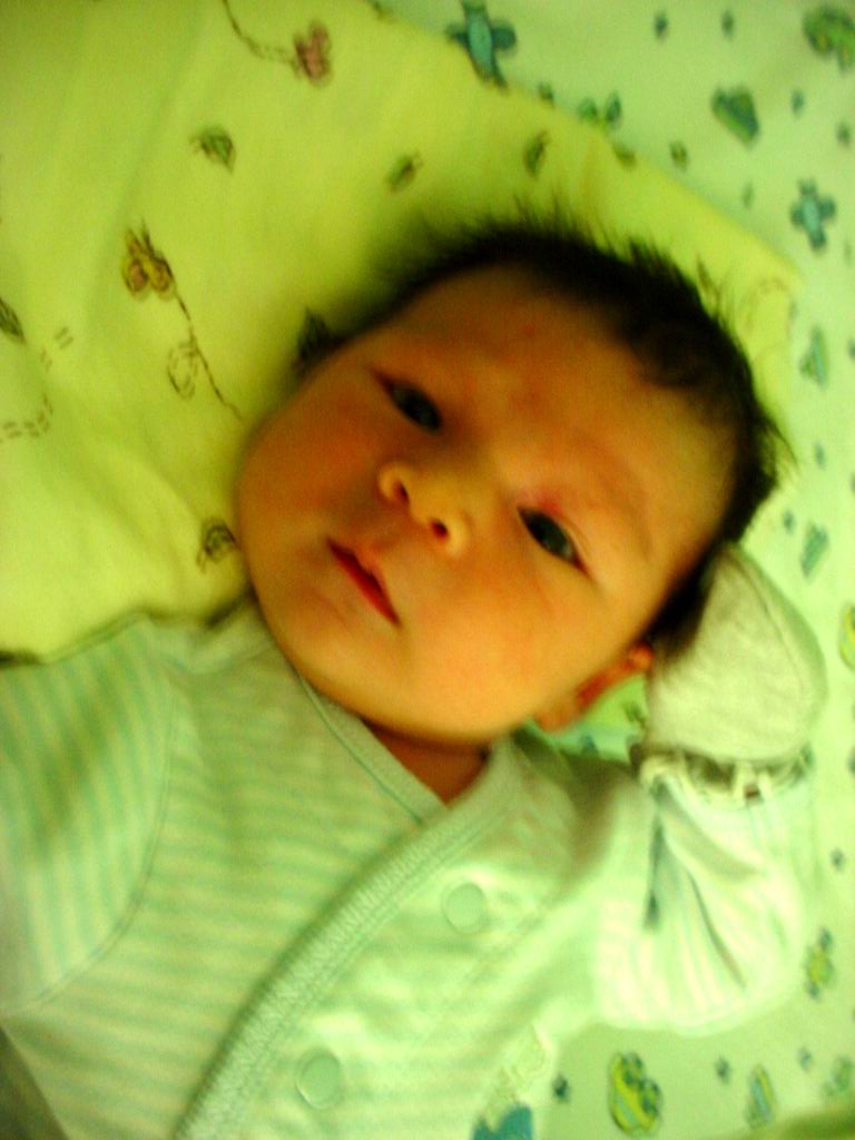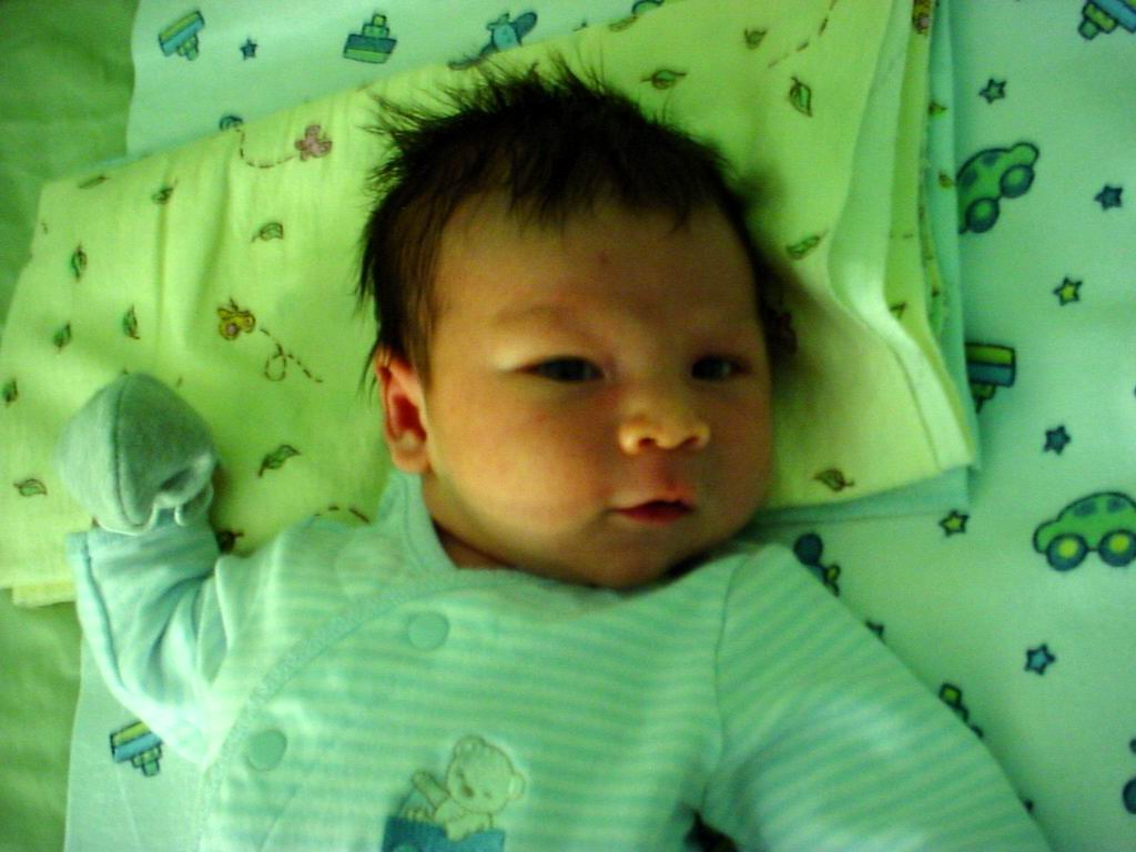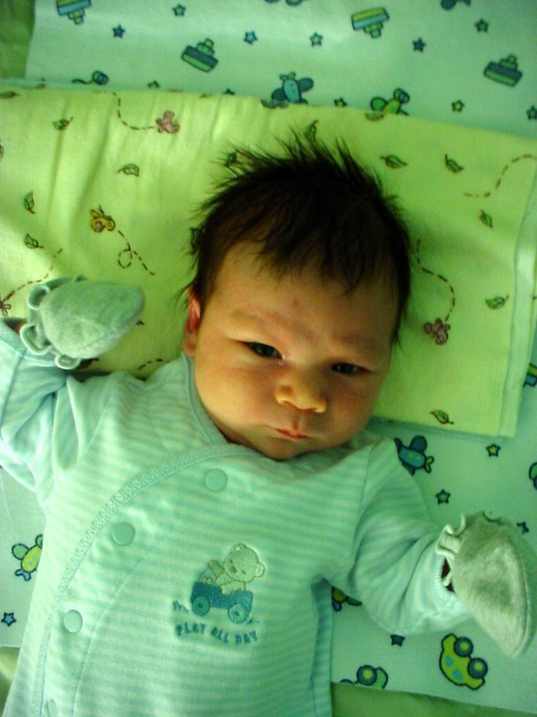Not! Brit is four weeks old and growing each day. Lately he's been a fussy little guy who doesn't want to get enough sleep. He often stares at new things. He especially likes looking out the window at the pool, pond and trees in the back yard. As always, you can email Brit at brit@huitema.com. His fingers still aren't big enough to type - but he's been dictating to me in the mean time. |