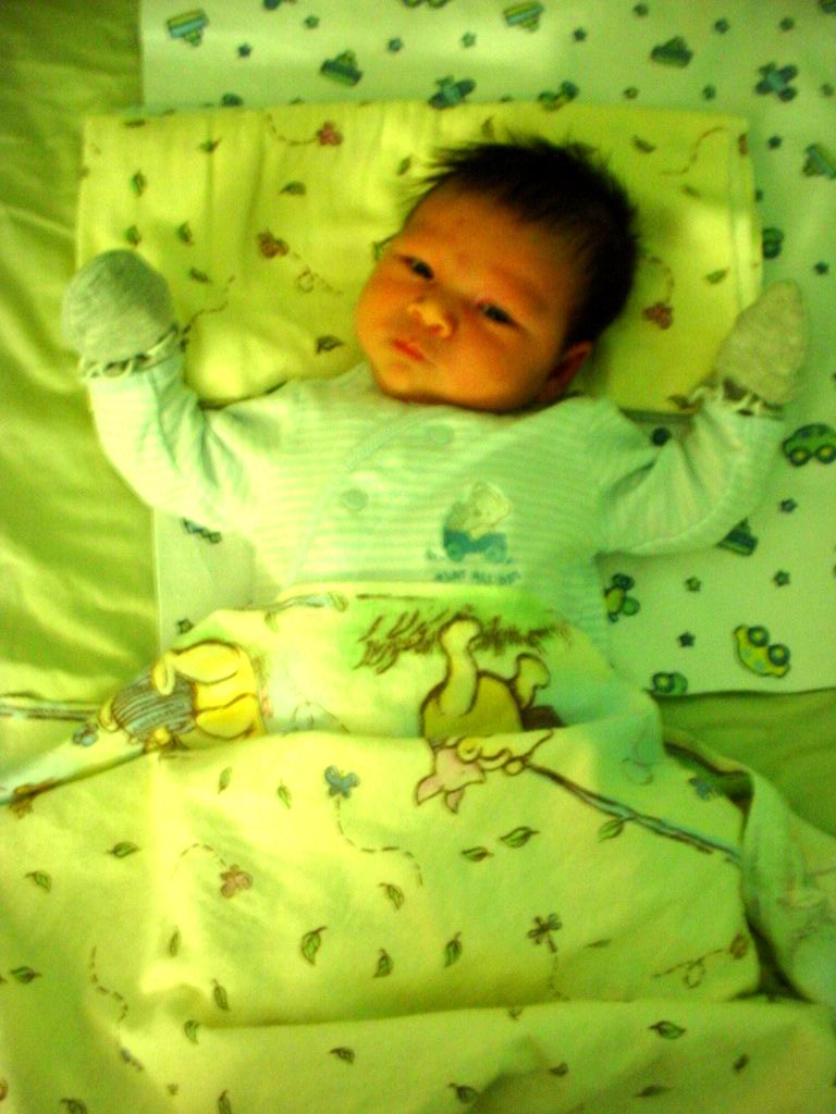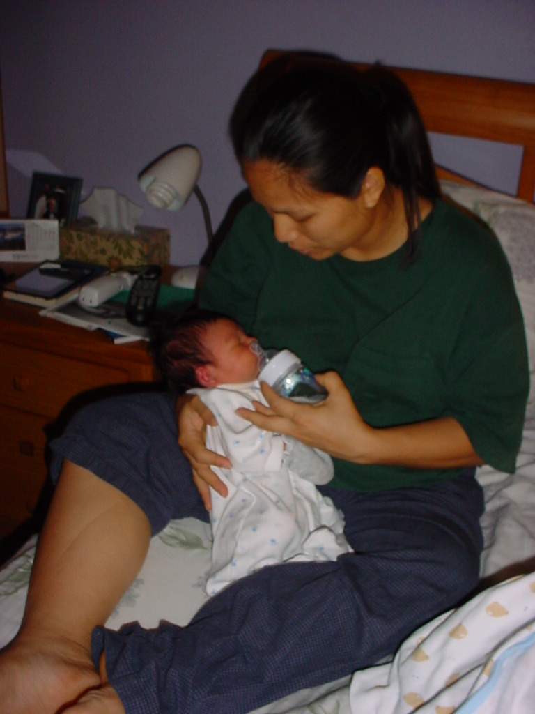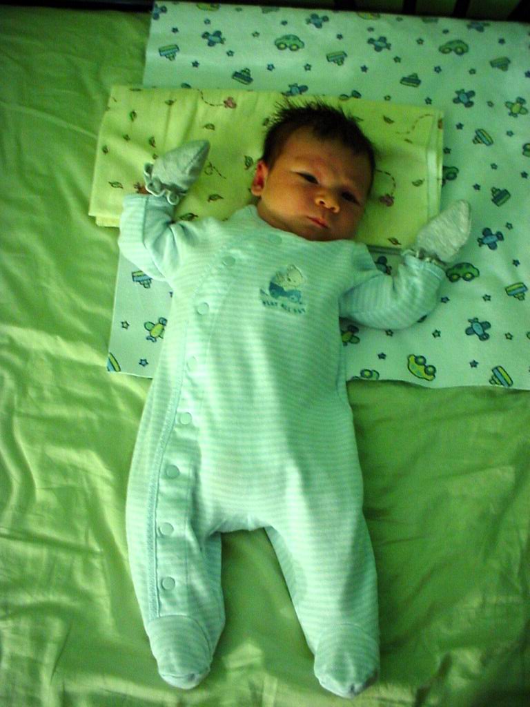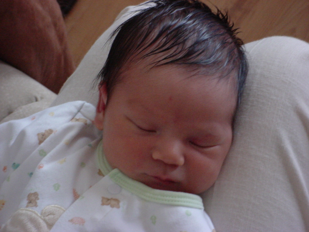 Not! Brit is four weeks old and growing each day. Lately he's been a fussy little guy who doesn't want to get enough sleep. He often stares at new things. He especially likes looking out the window at the pool, pond and trees in the back yard. As always, you can email Brit at brit@huitema.com. His fingers still aren't big enough to type - but he's been dictating to me in the mean time. |