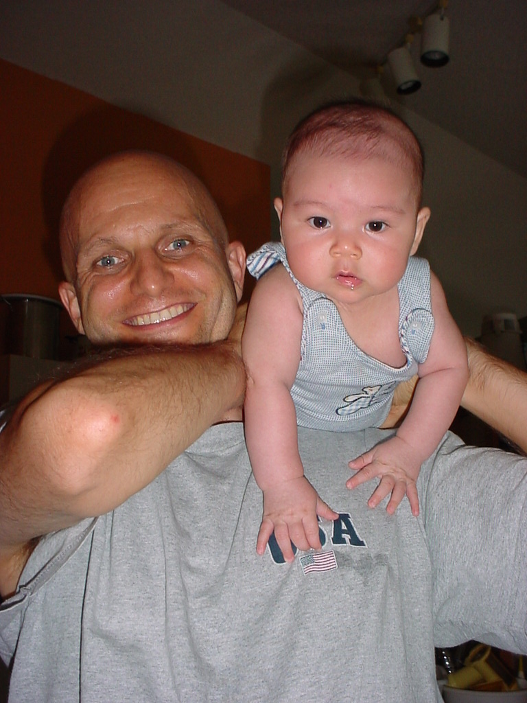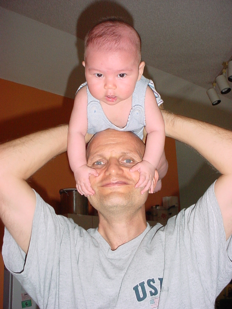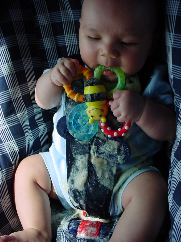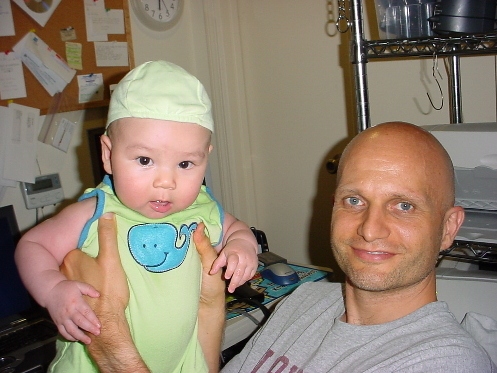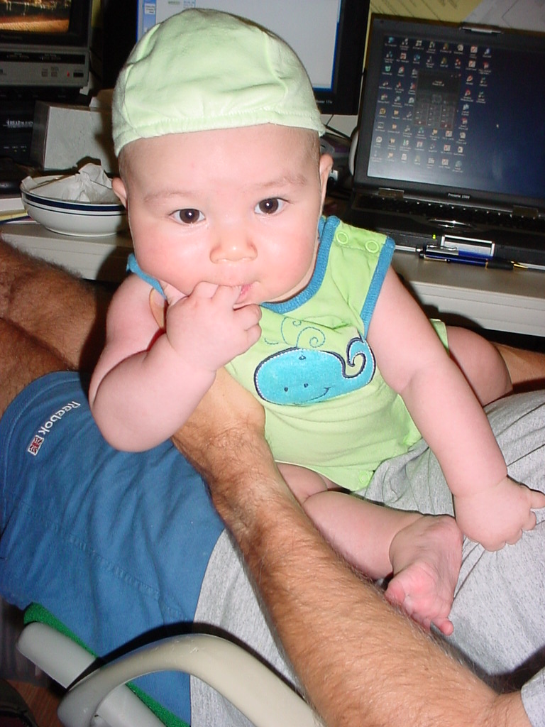 Daddy's Note (September 21, 2005): Well it's been almost a month since my last update. Since I have a lot of time to make up I've posted 66 new pictures. That's more than two pictures per day of our hero - who turns 4 months old tomorrow. He's still a ginormous baby for his age. Banh and I will often walk around in a store and greet another couple with a baby. "How old is your baby?" "One year old", they will reply - and the baby is way smaller than Brit. So now I make fun of all the little micro-babies everyone else has! But seriously, I learned that baby size is not a predictor of adult size. Banh stopped growing in fifth grade. Up until that time she was taller than some of her peers. We'll see what happens with Brit. |