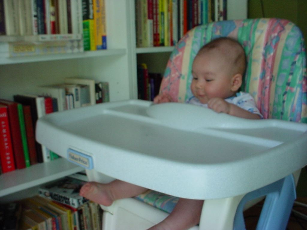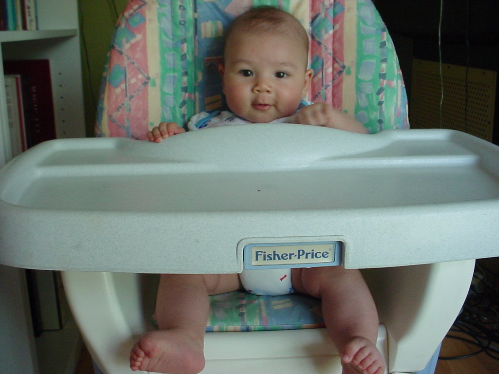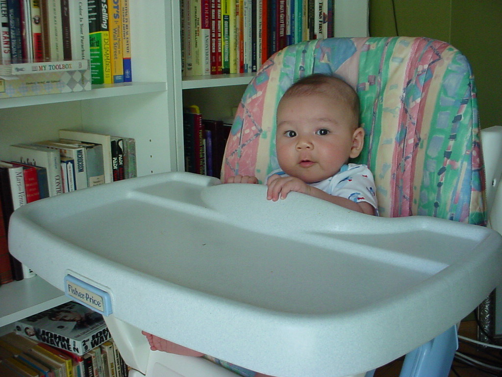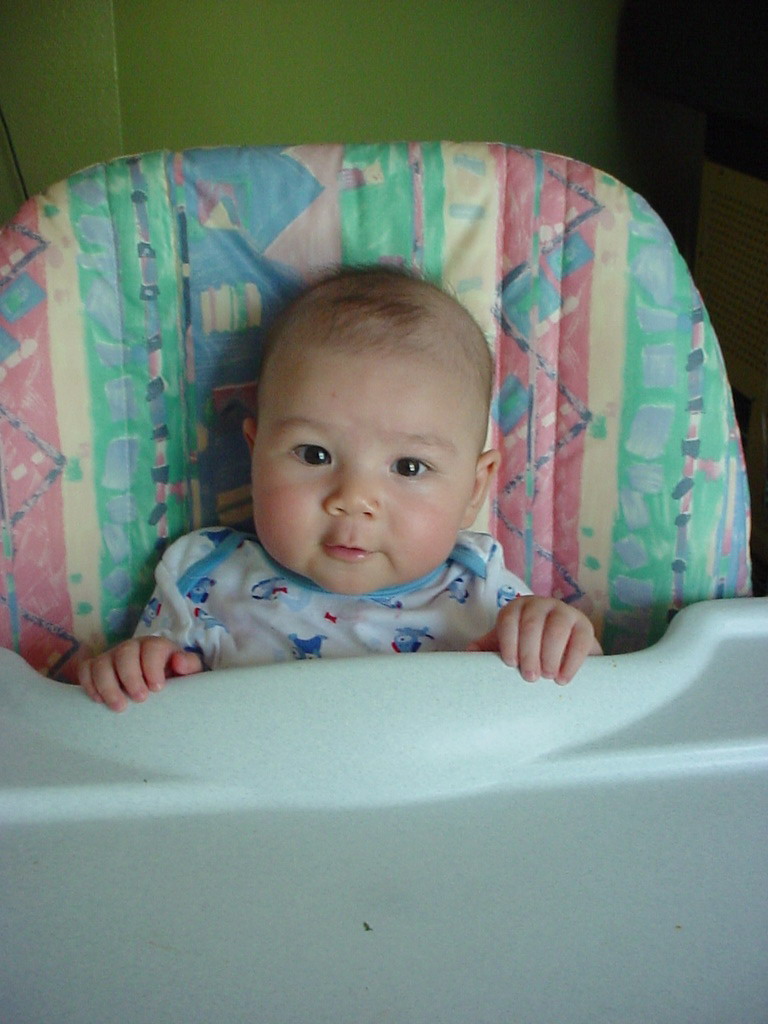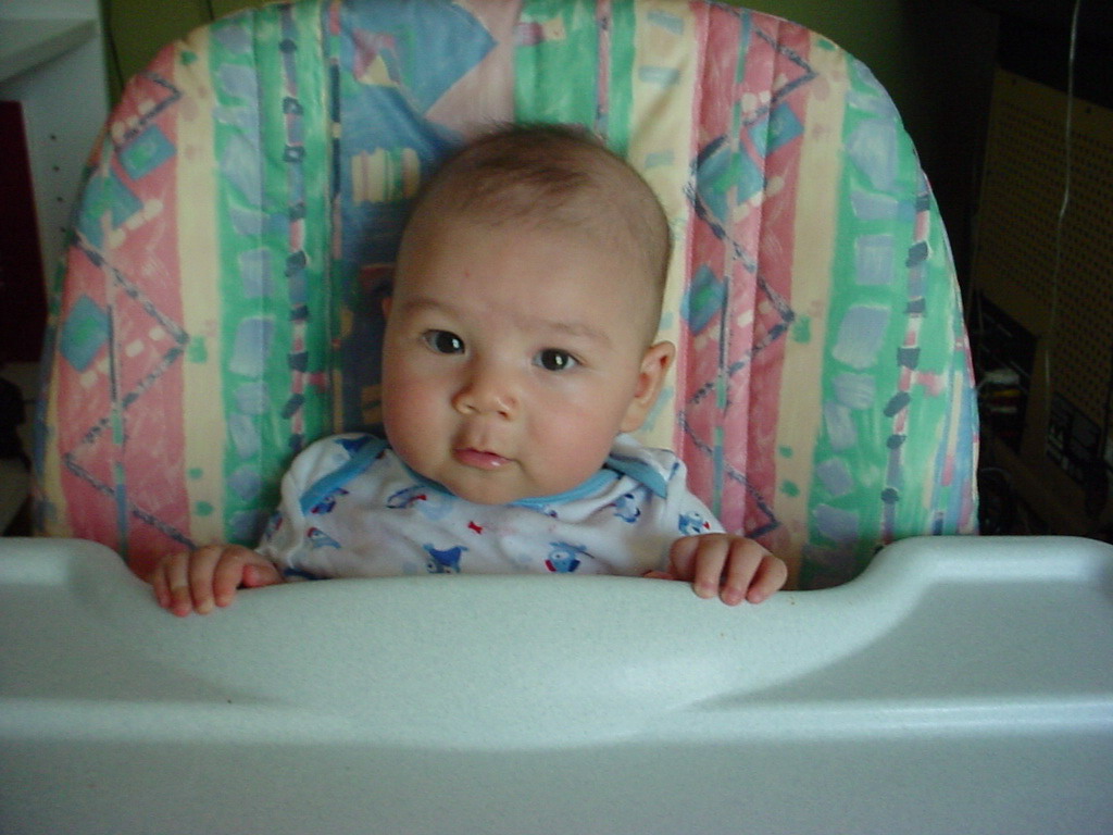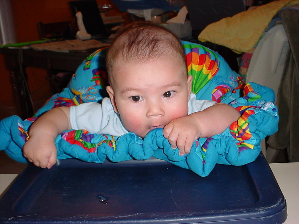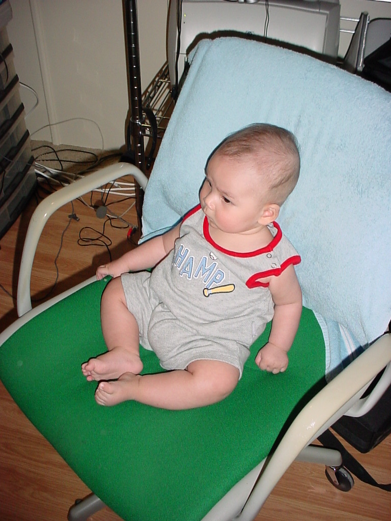little dude waiting in the doctor's office, at the Olive Garden, in his new high chair and just