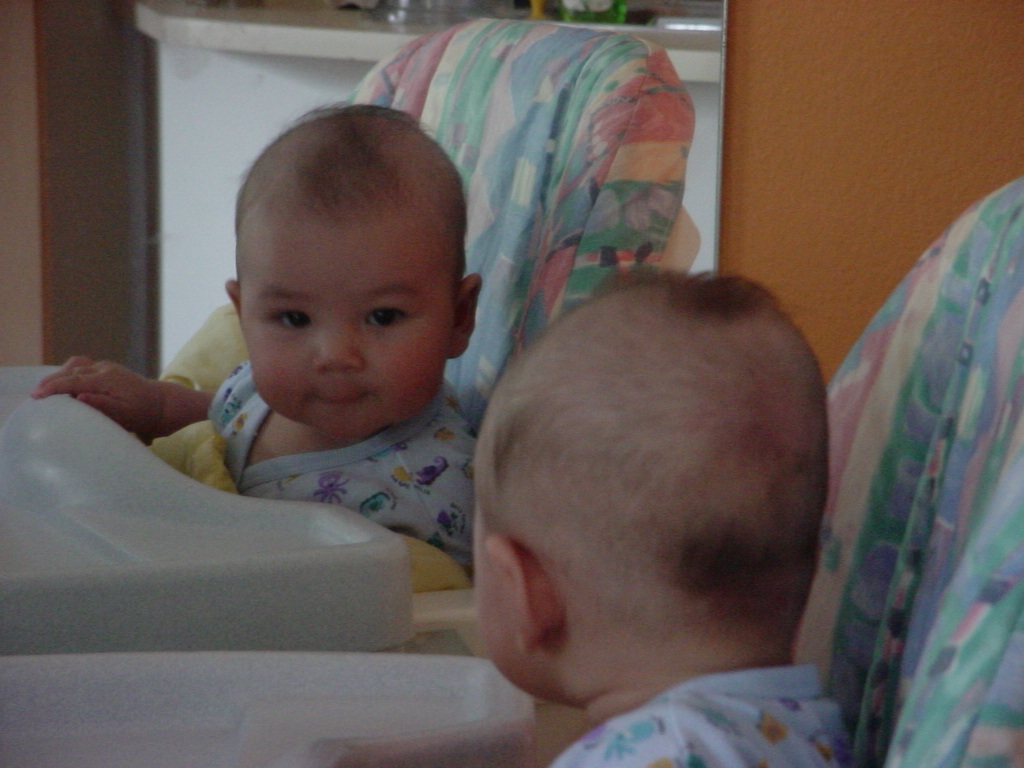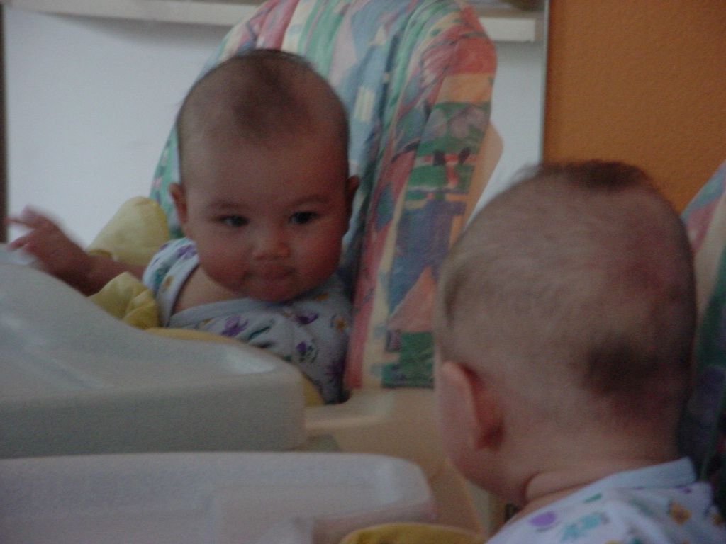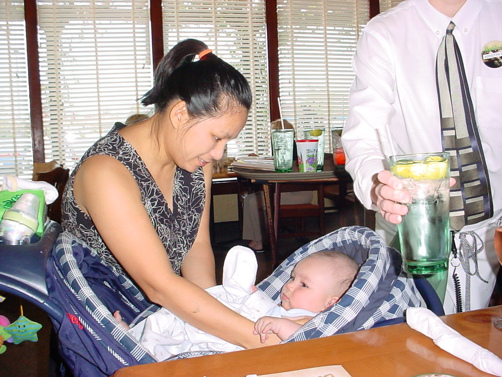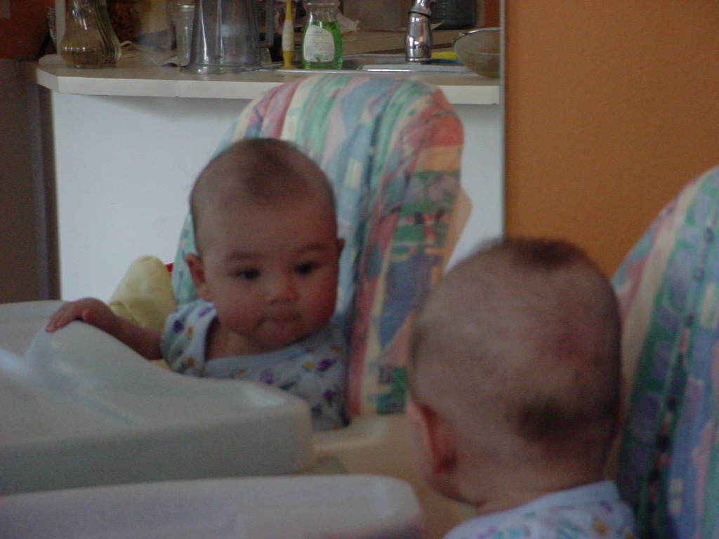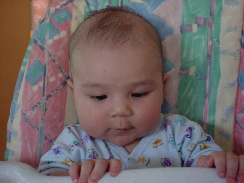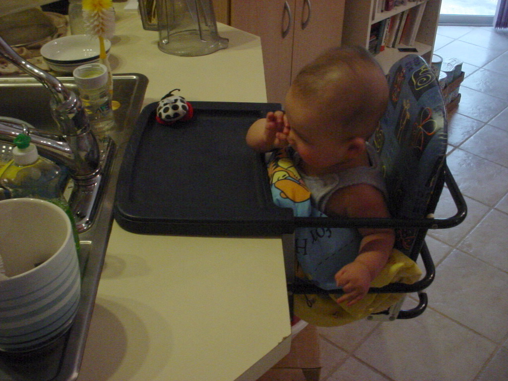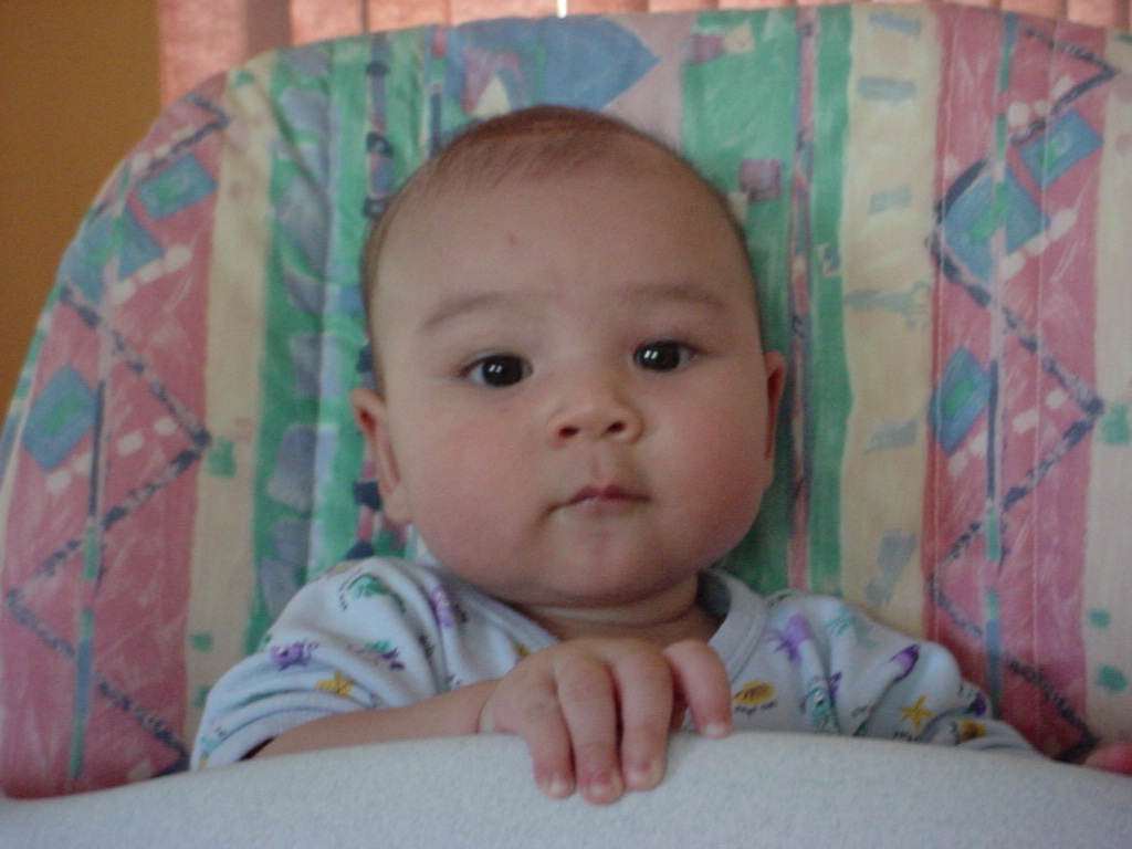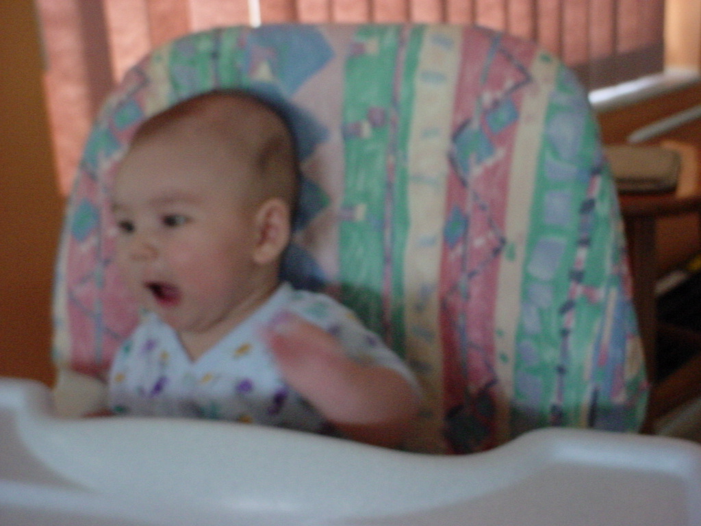 little dude waiting in the doctor's office, at the Olive Garden, in his new high chair and just