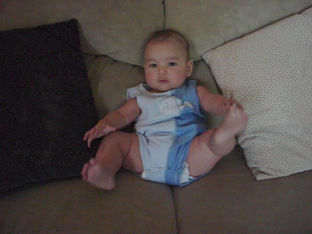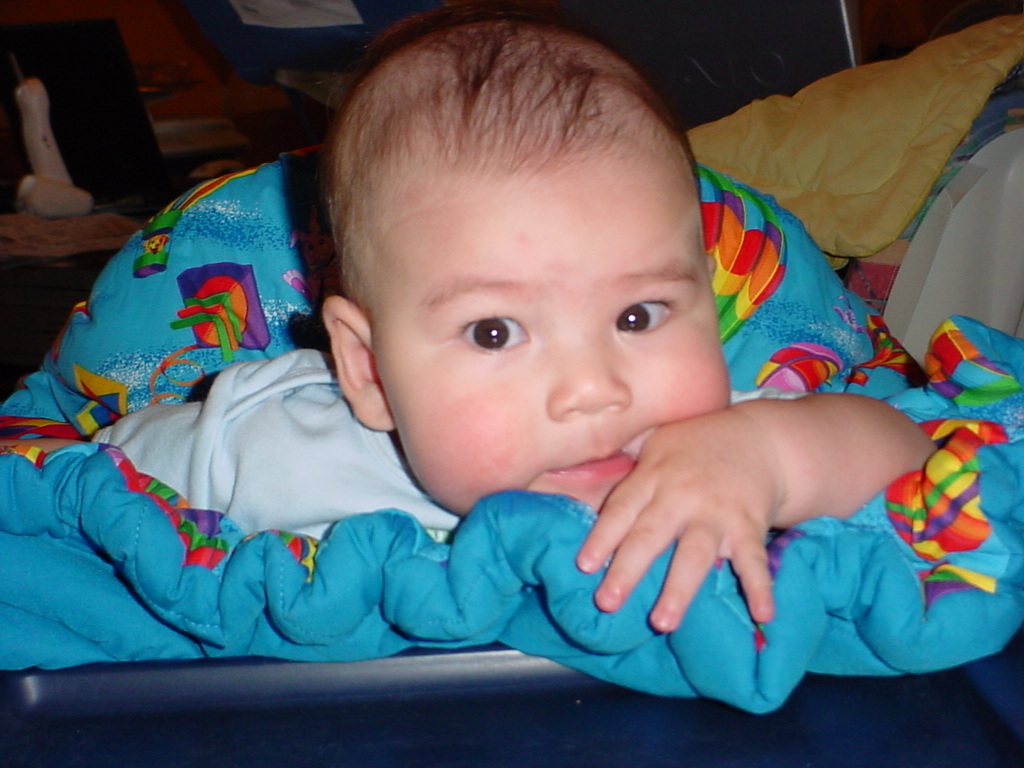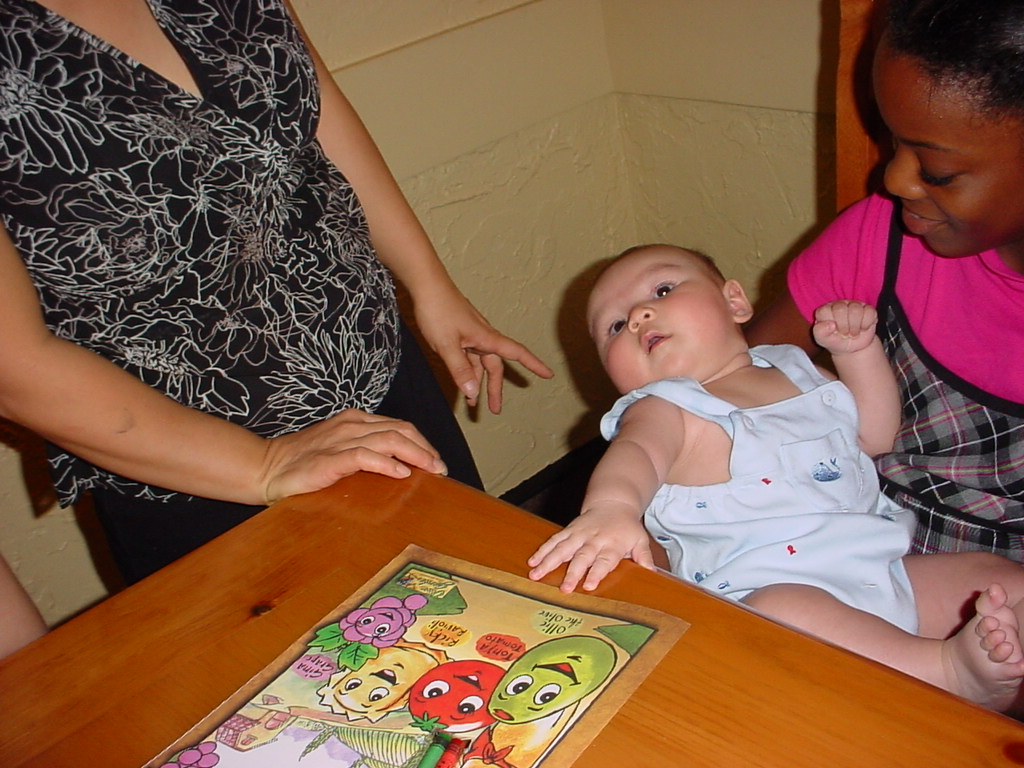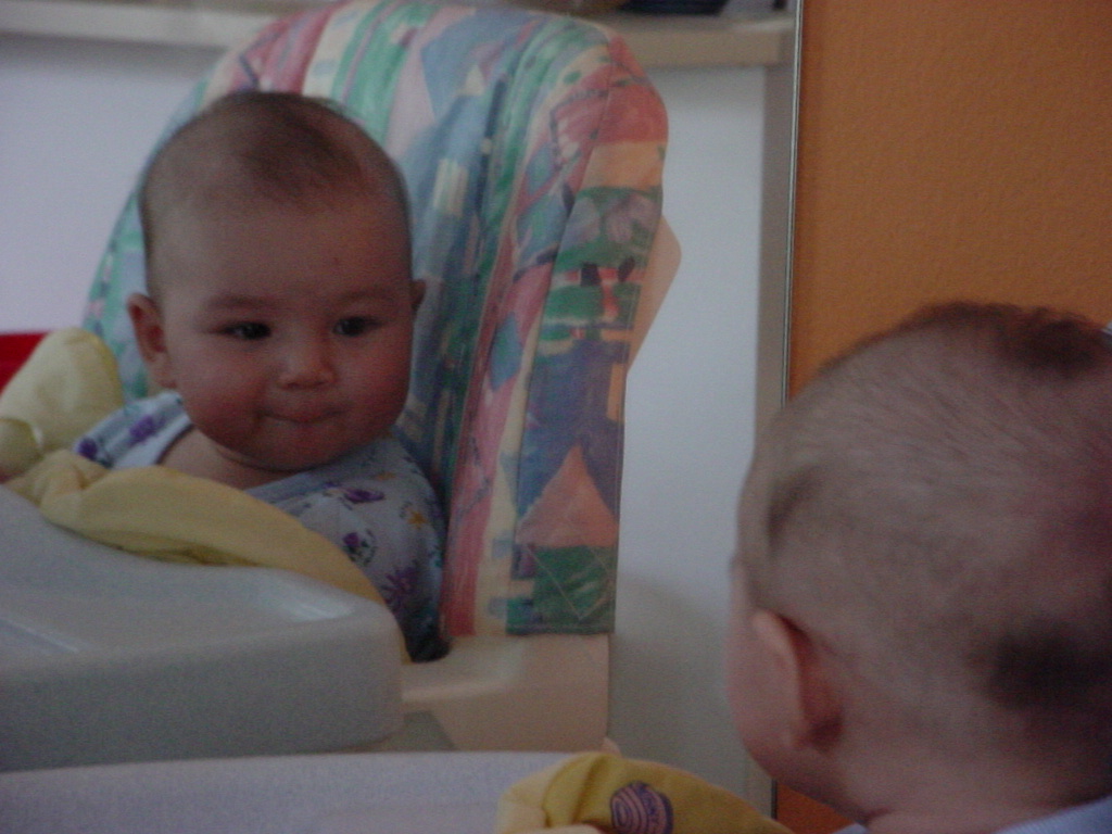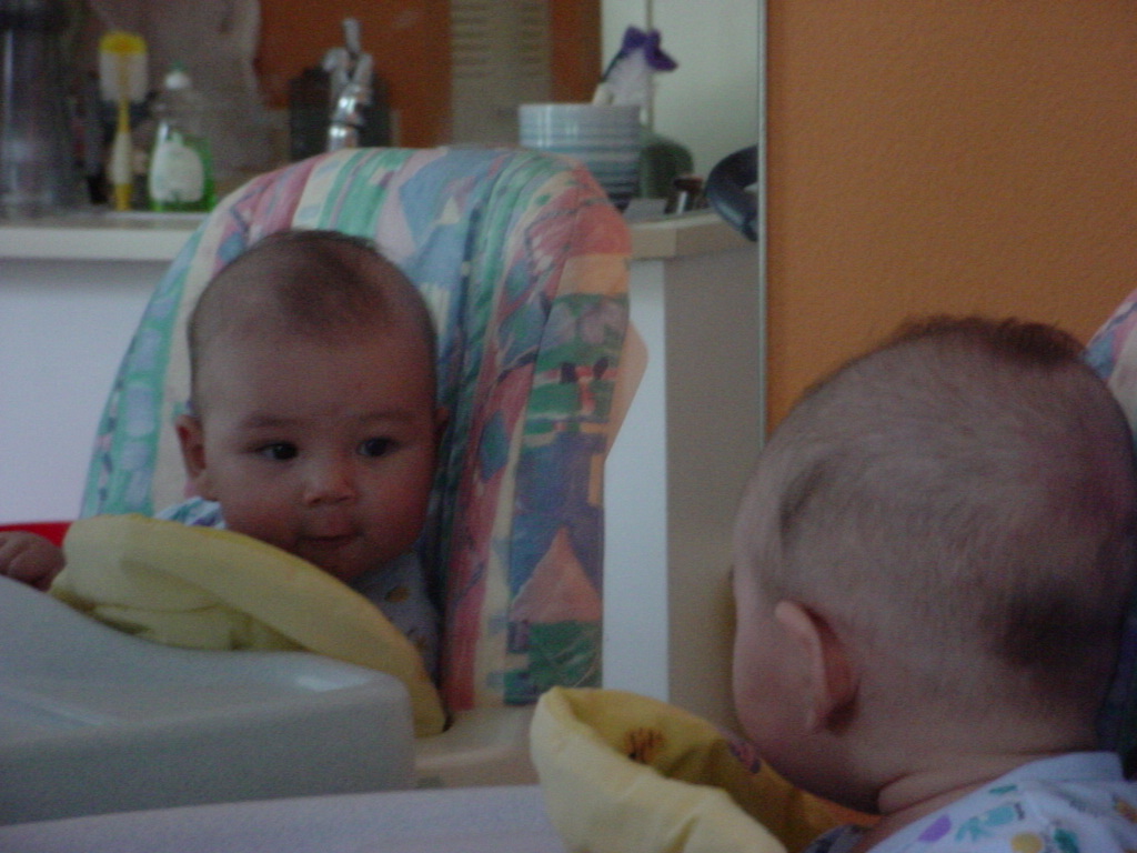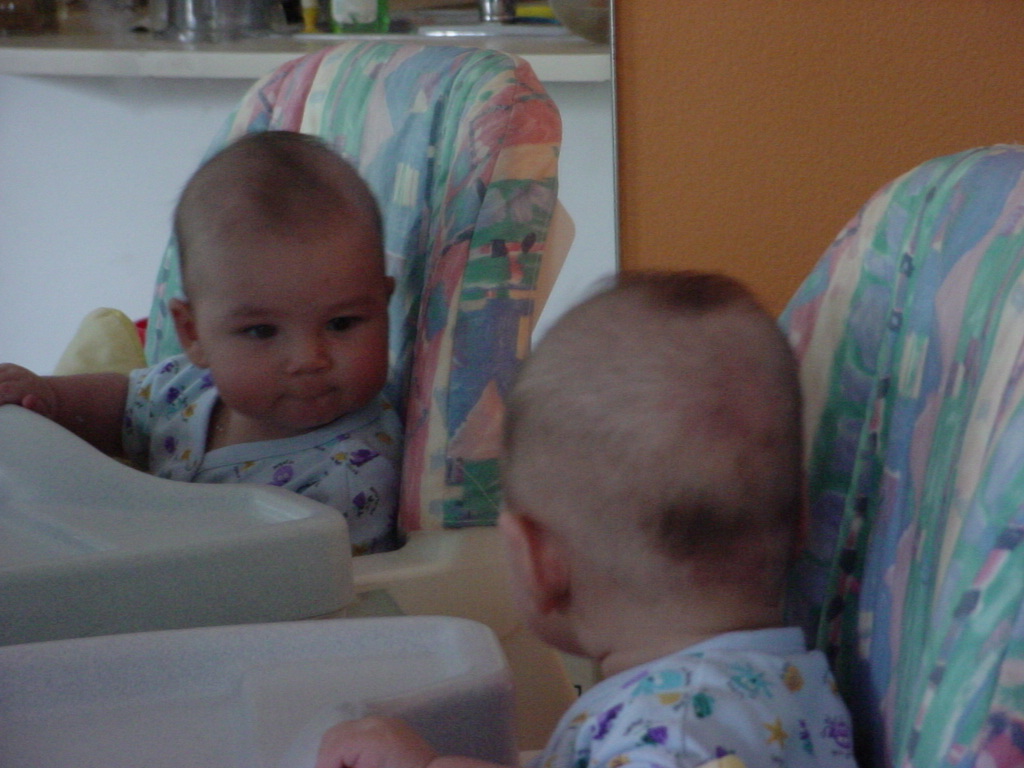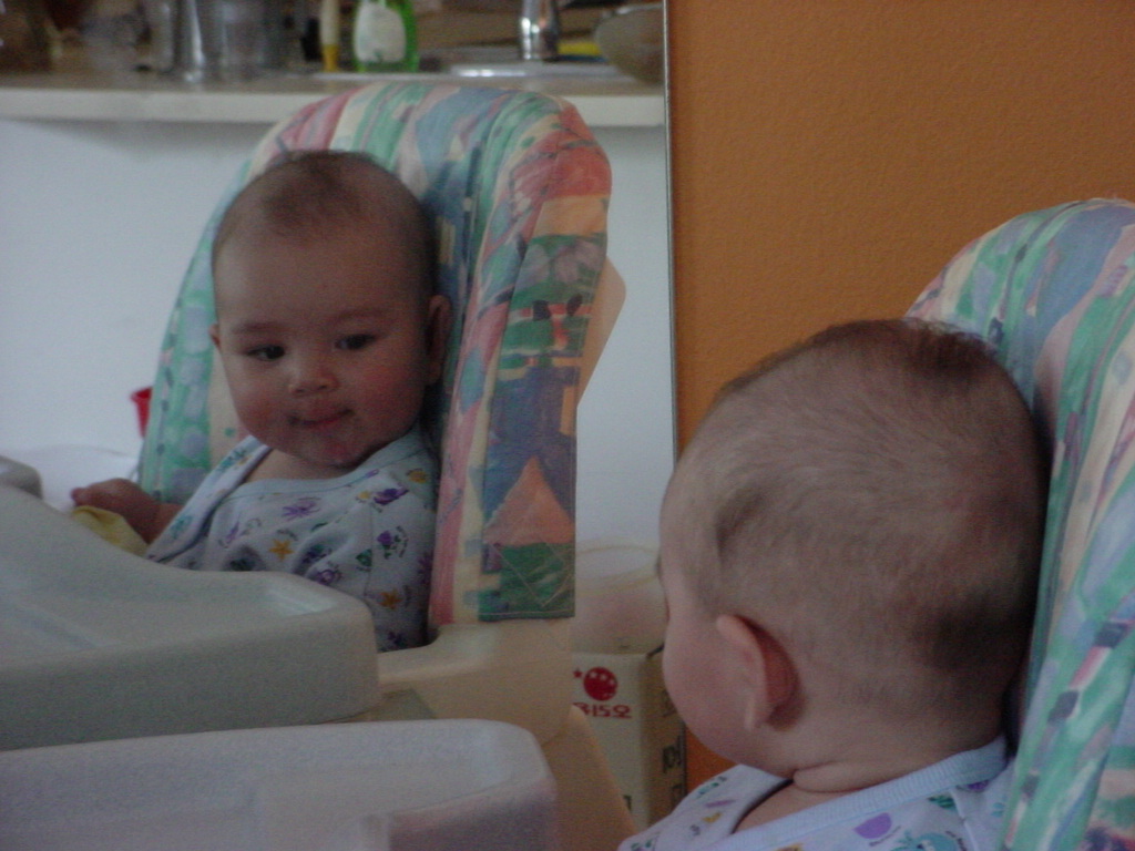 little dude waiting in the doctor's office, at the Olive Garden, in his new high chair and just