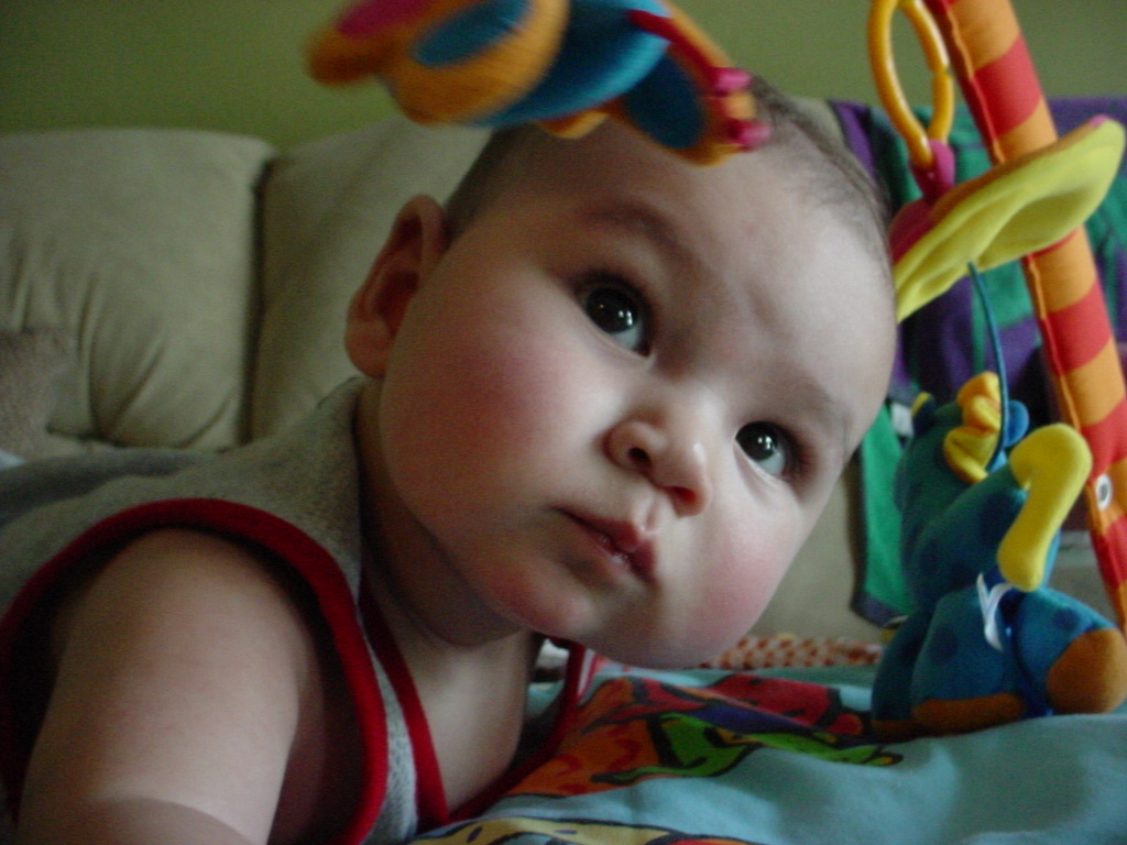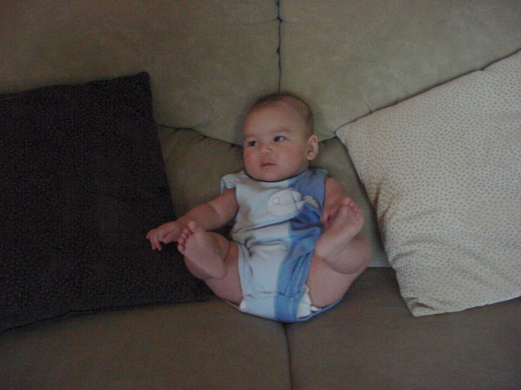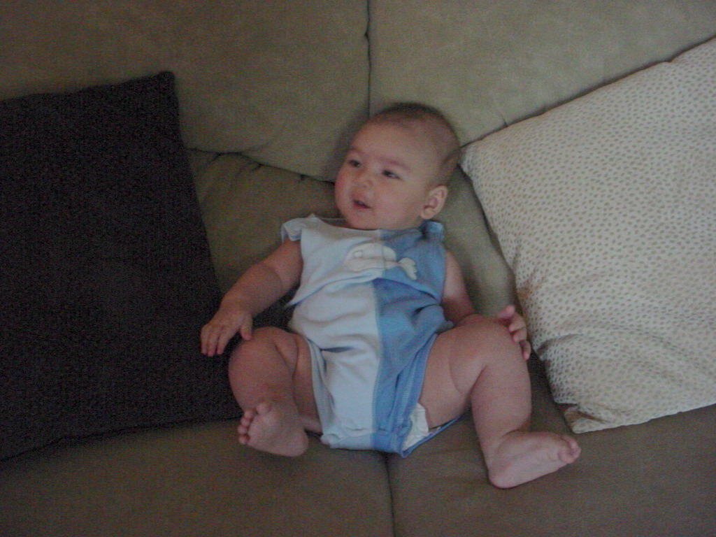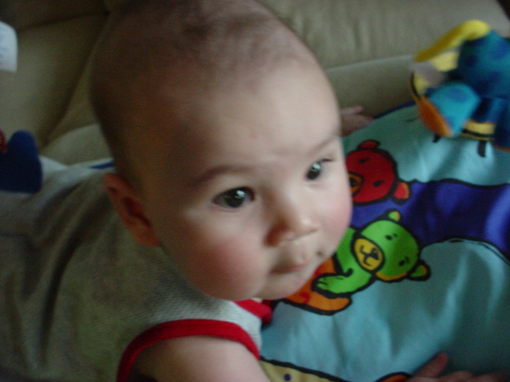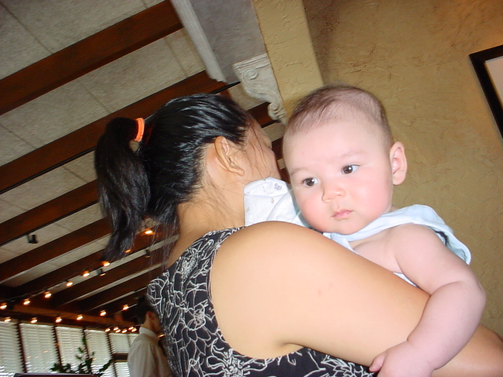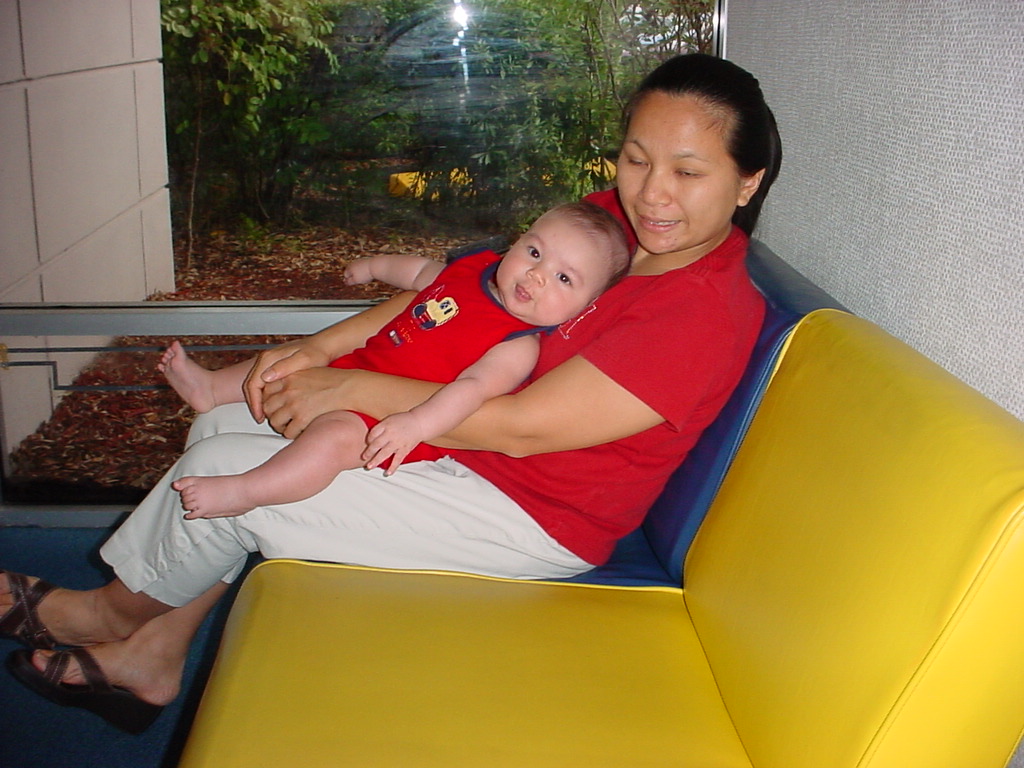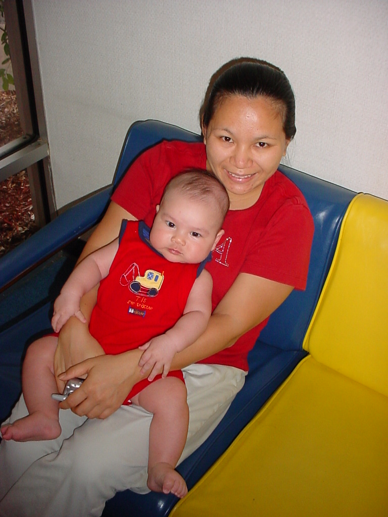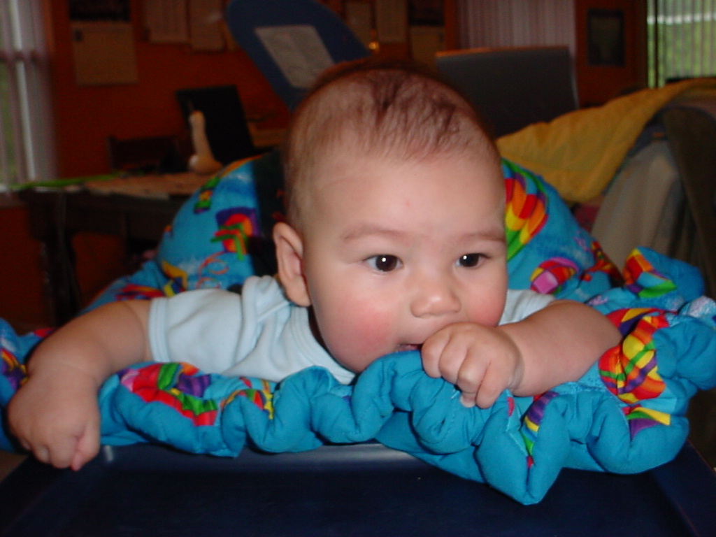 little dude waiting in the doctor's office, at the Olive Garden, in his new high chair and just