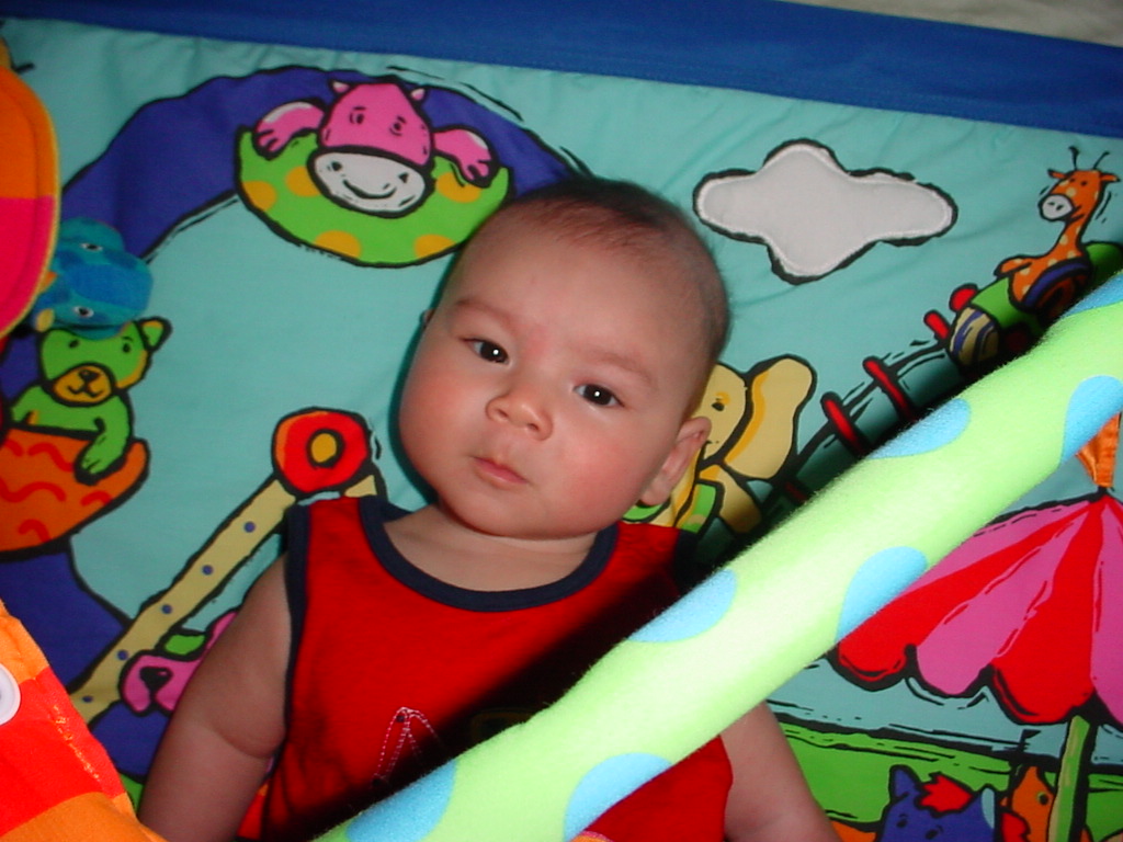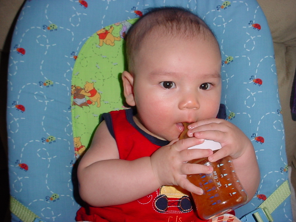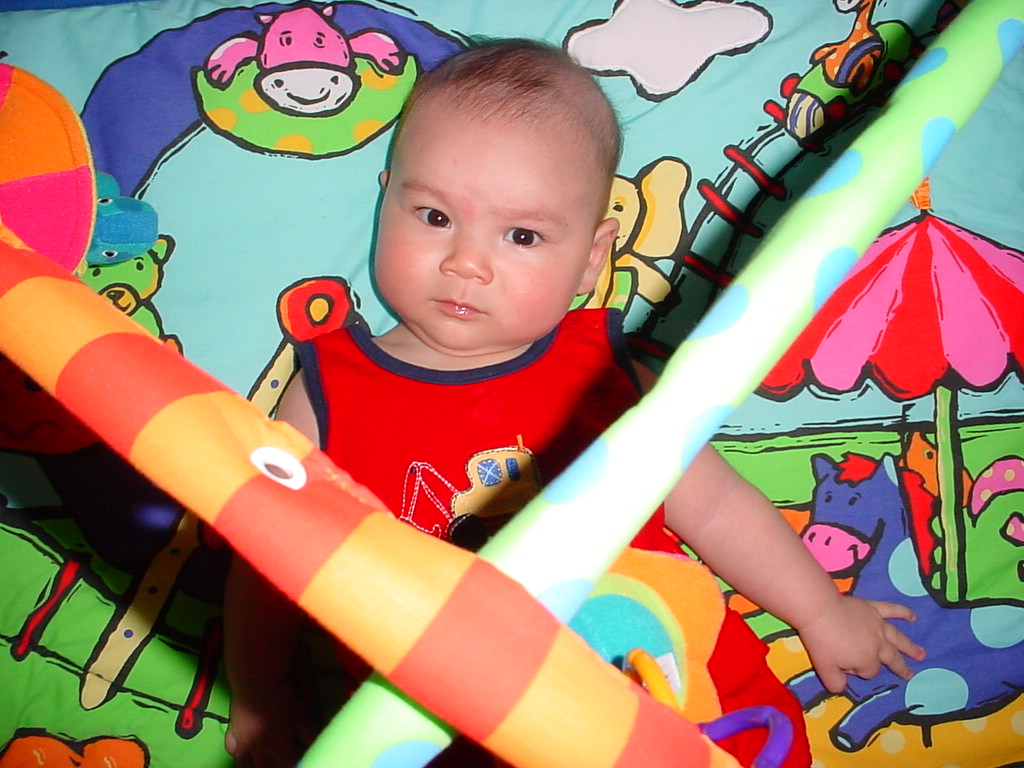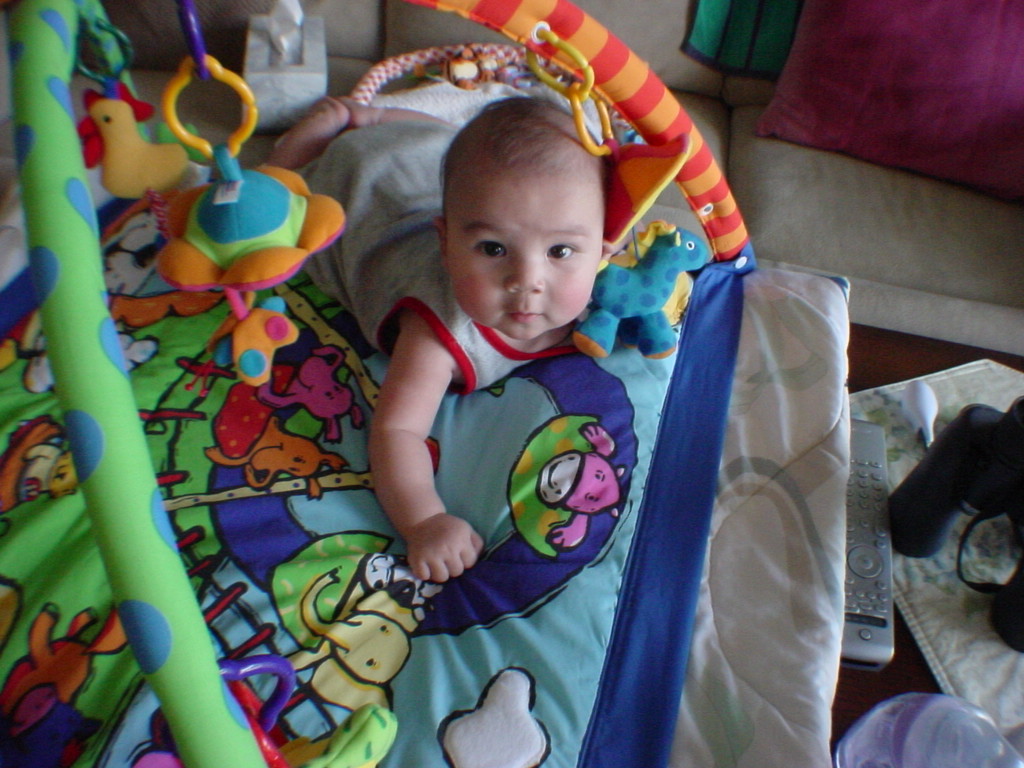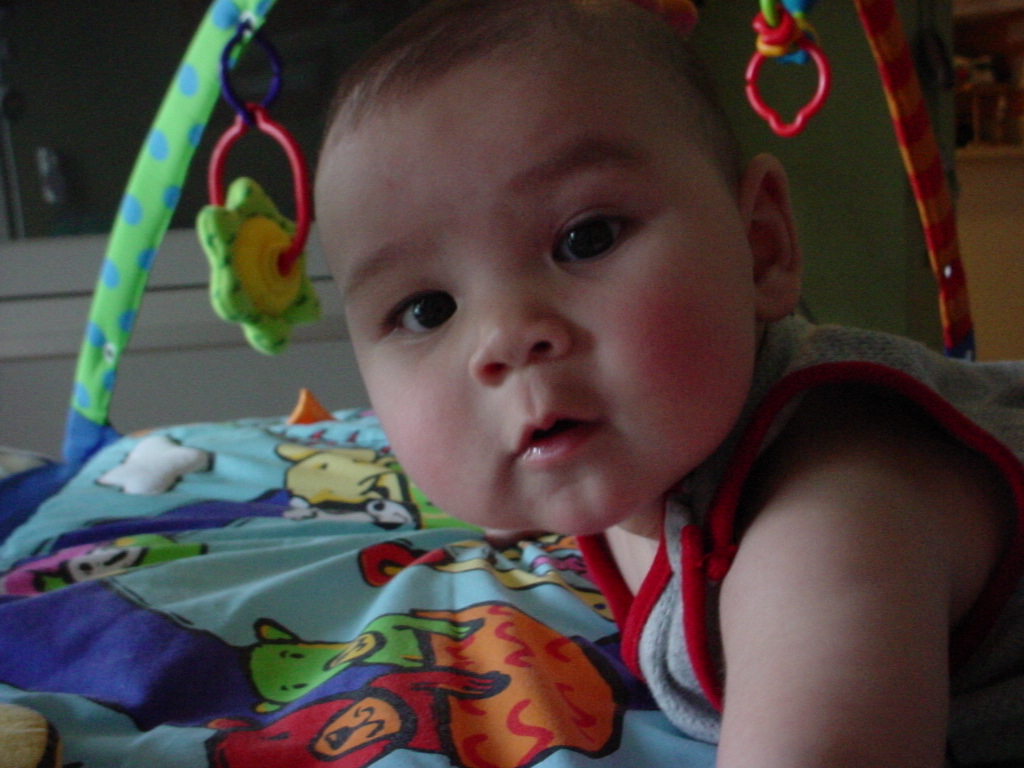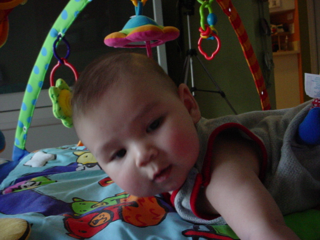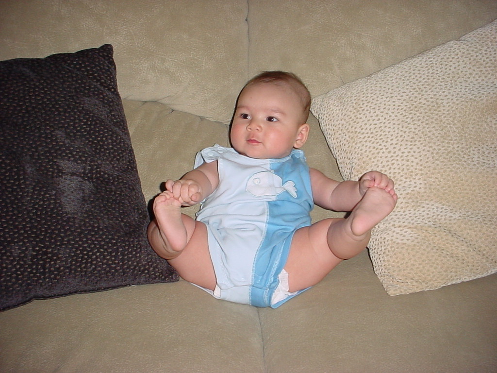 little dude waiting in the doctor's office, at the Olive Garden, in his new high chair and just