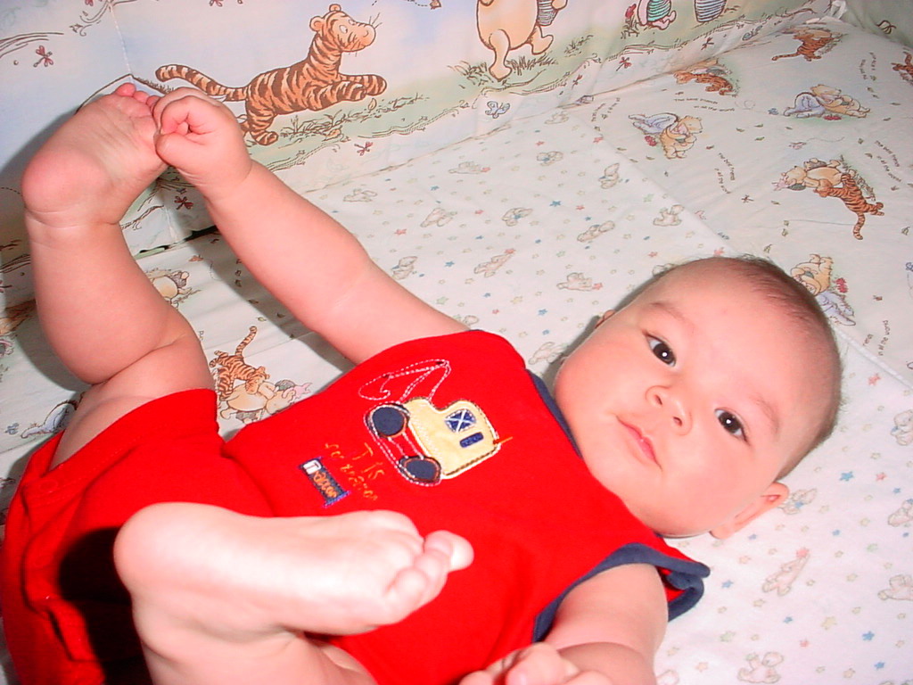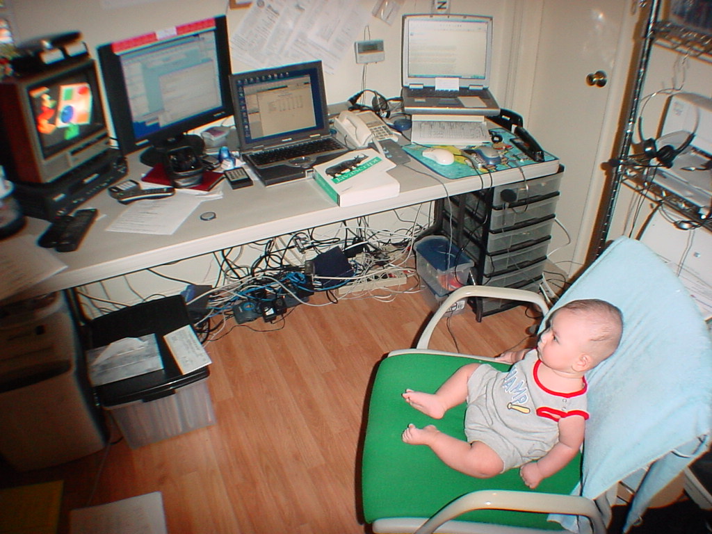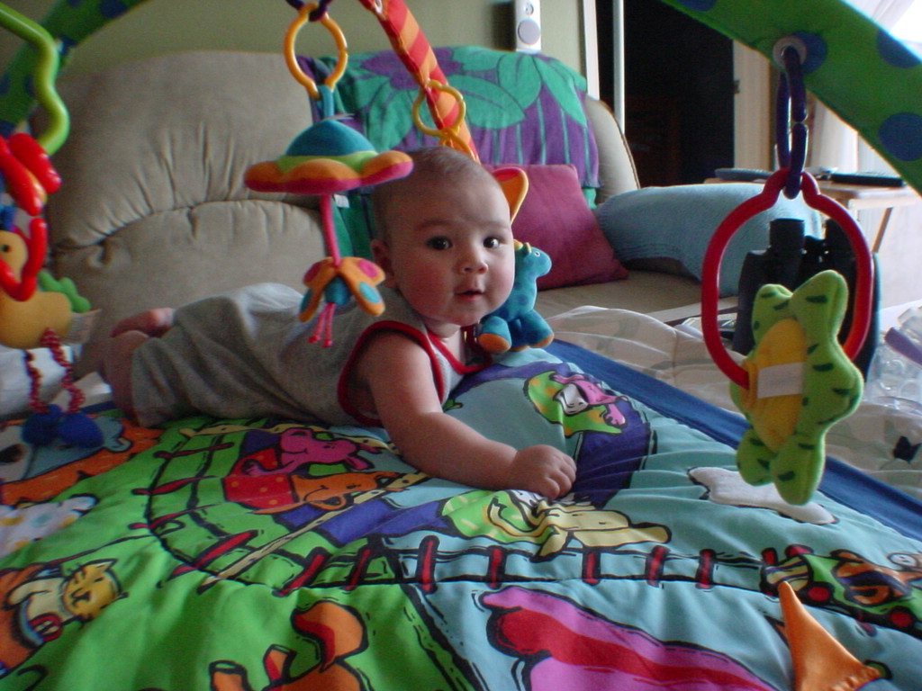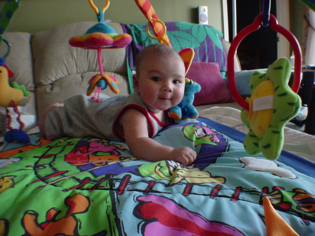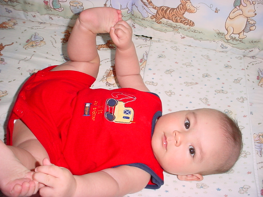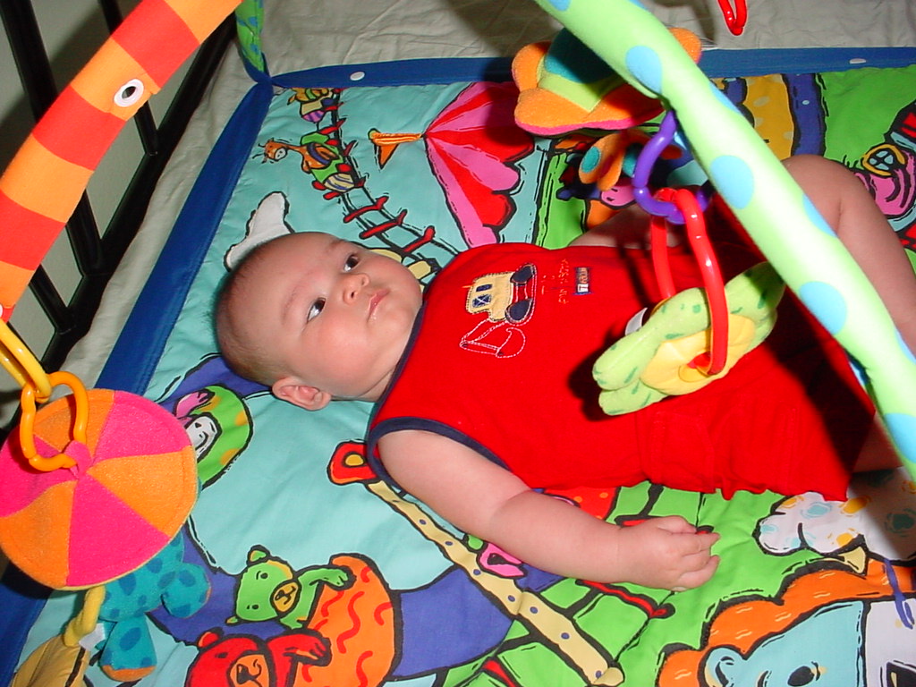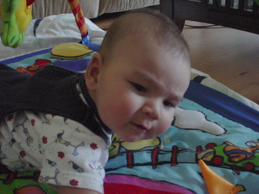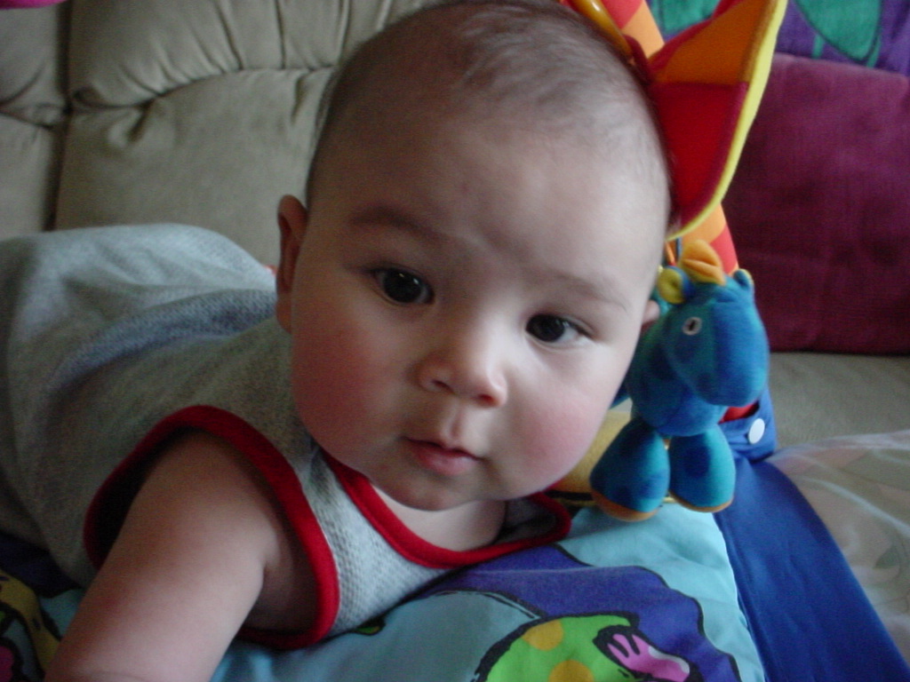 little dude waiting in the doctor's office, at the Olive Garden, in his new high chair and just