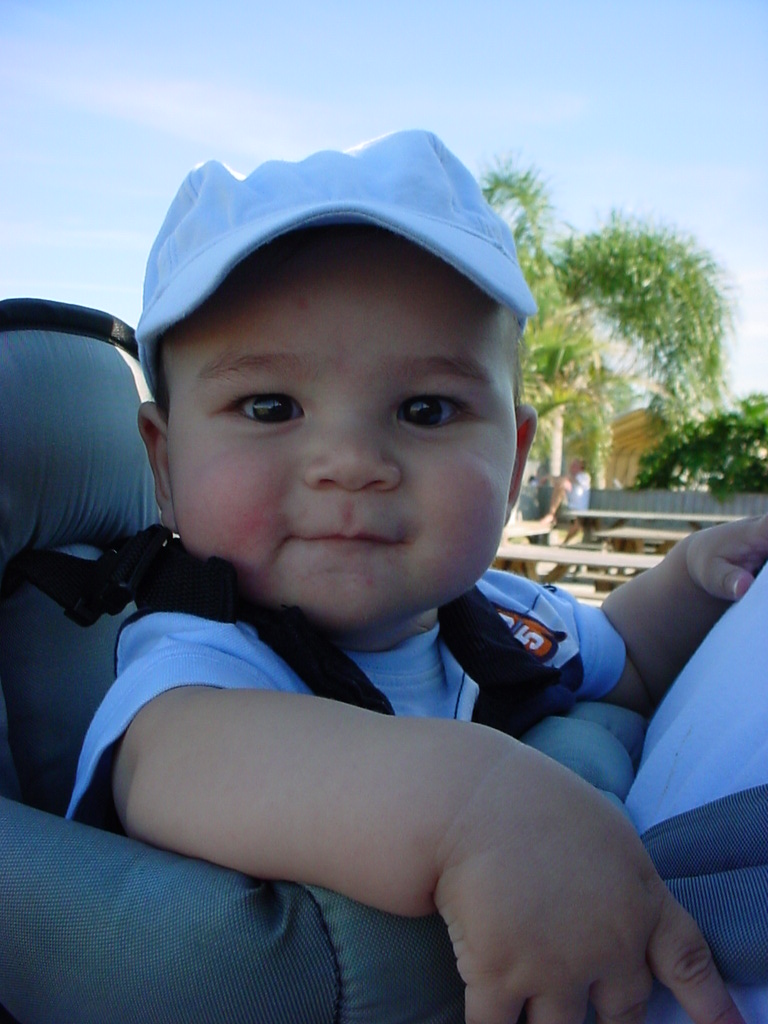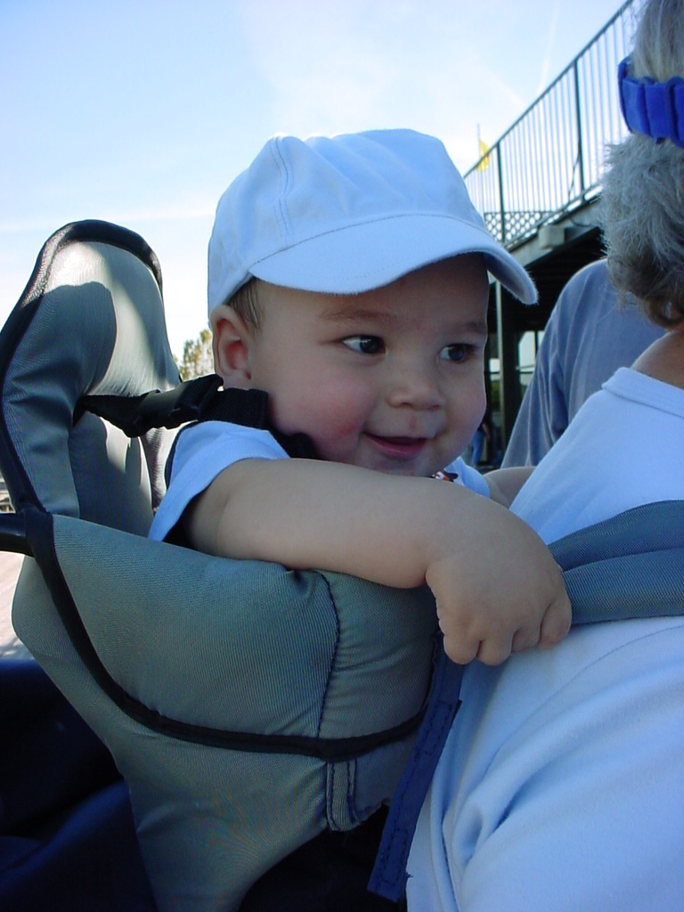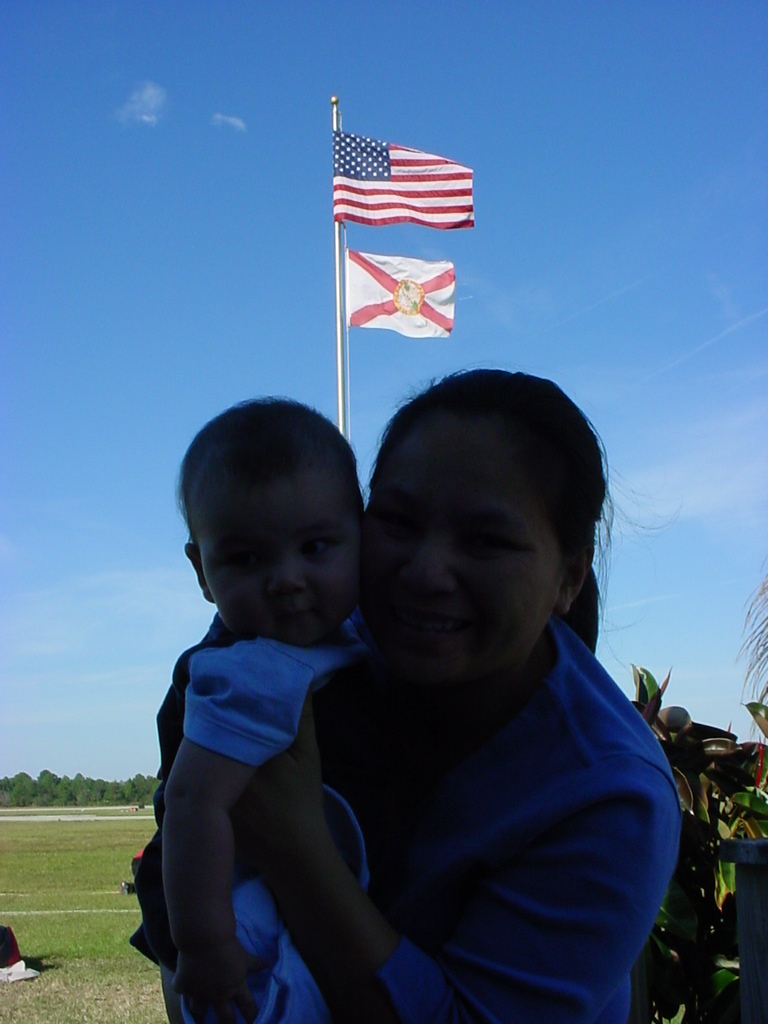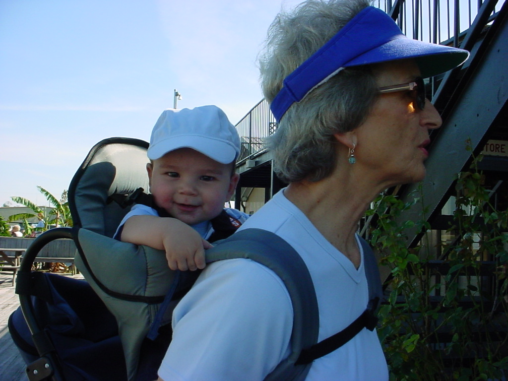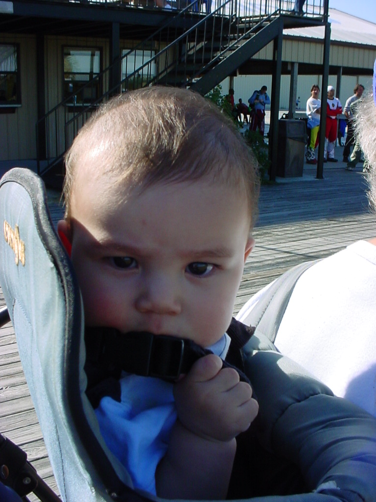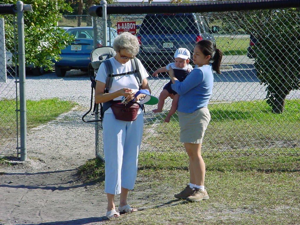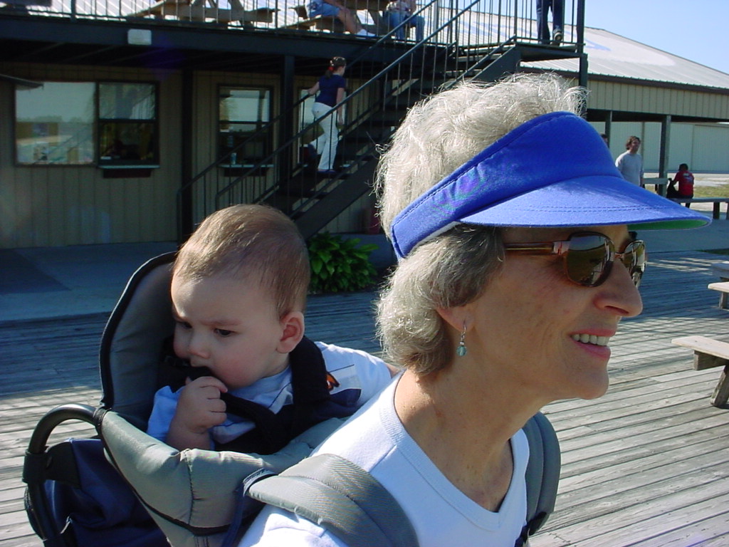 First Thanksgiving Mom's Note November 23,2005: Brit's first Thanksgiving weekend was spent in Deland where his Oma and Opa live. He really enjoyed going to the Deland Dive School to watch the skydivers jump out of the planes. Oma gave him his first piano lesson. You can see he likes pounding on the keys.