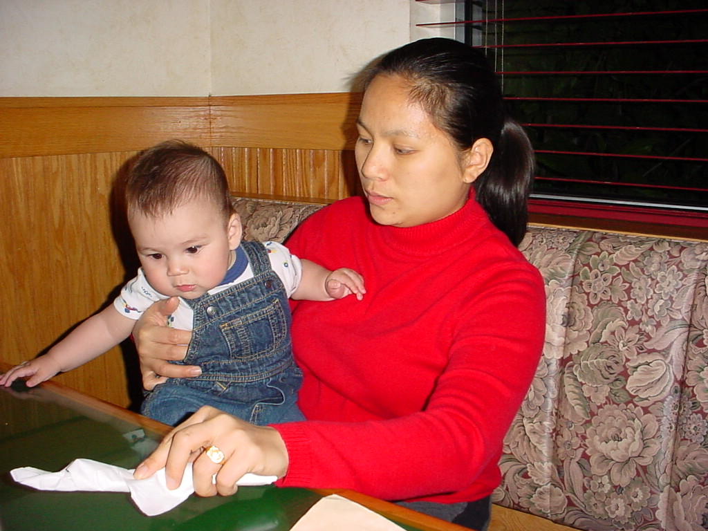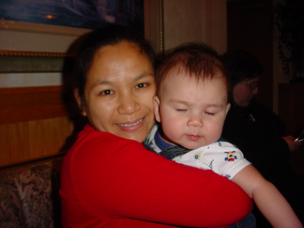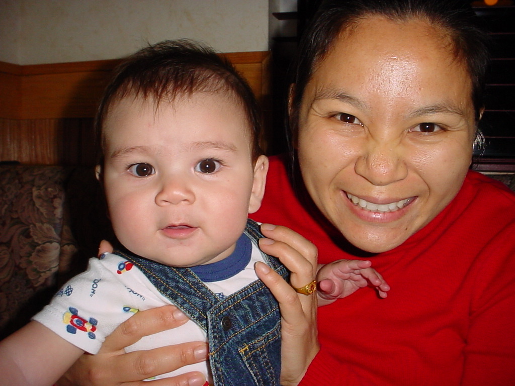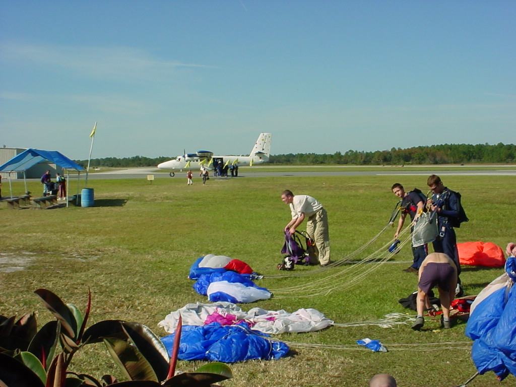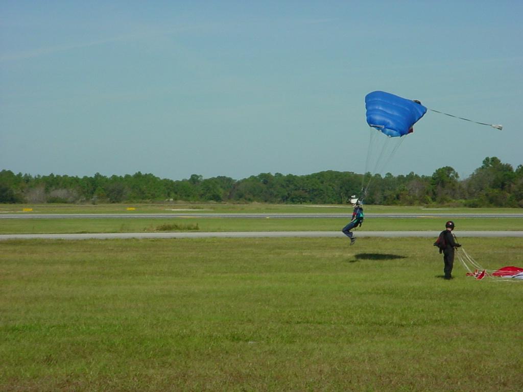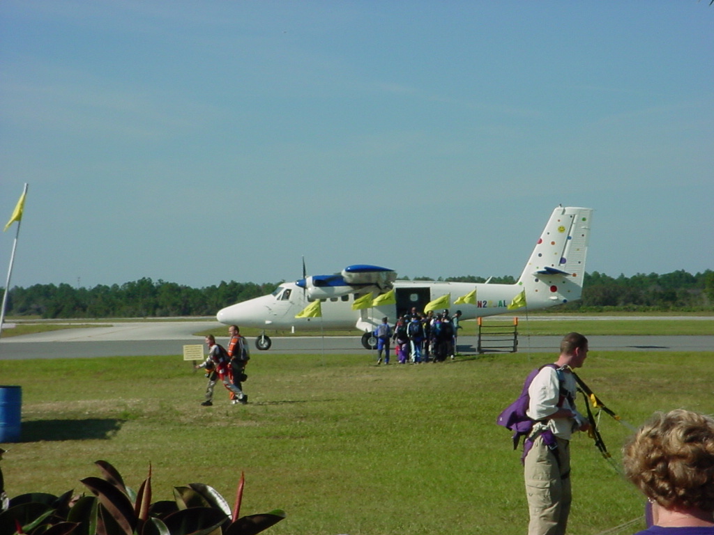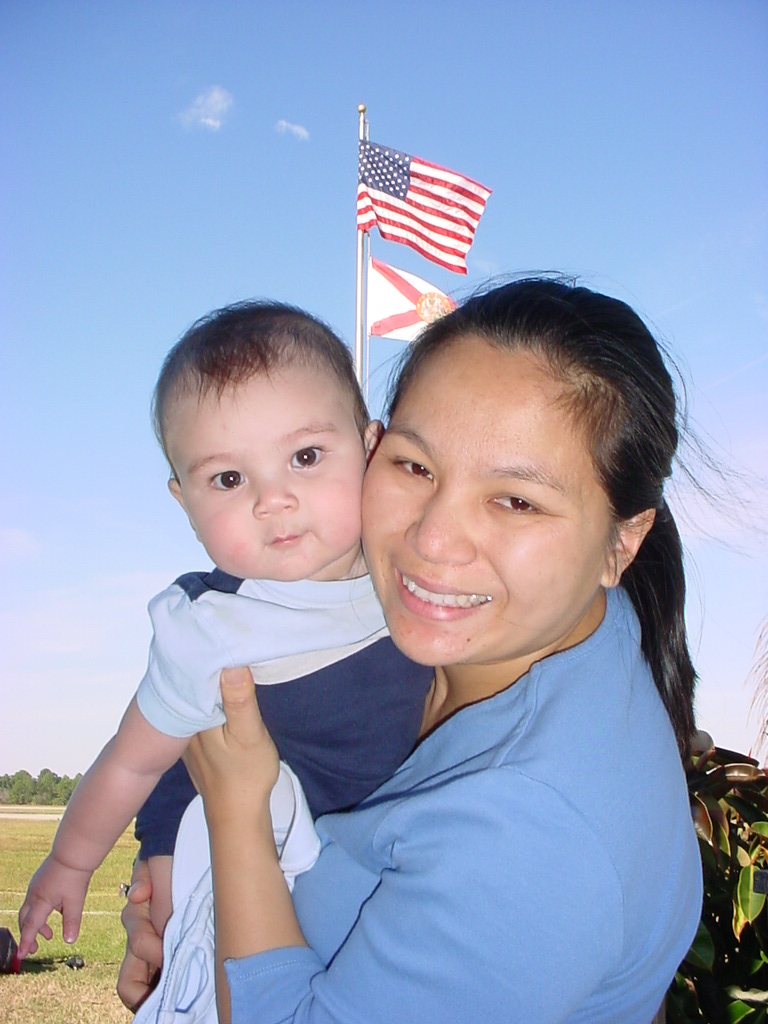 First Thanksgiving Mom's Note November 23,2005: Brit's first Thanksgiving weekend was spent in Deland where his Oma and Opa live. He really enjoyed going to the Deland Dive School to watch the skydivers jump out of the planes. Oma gave him his first piano lesson. You can see he likes pounding on the keys.