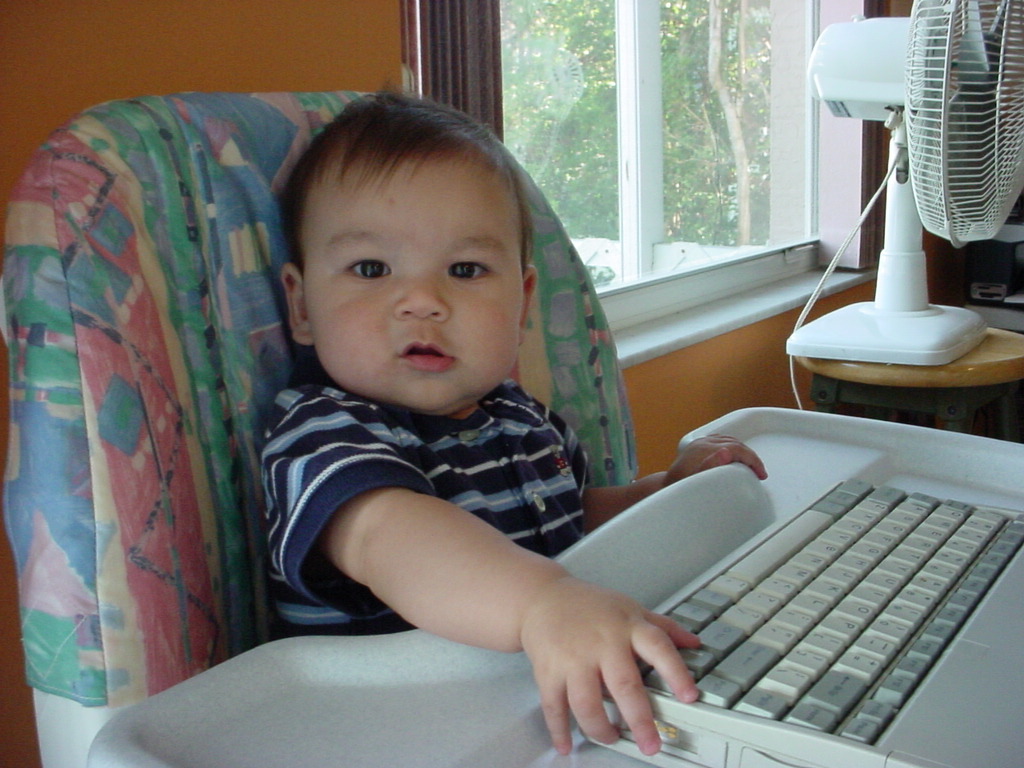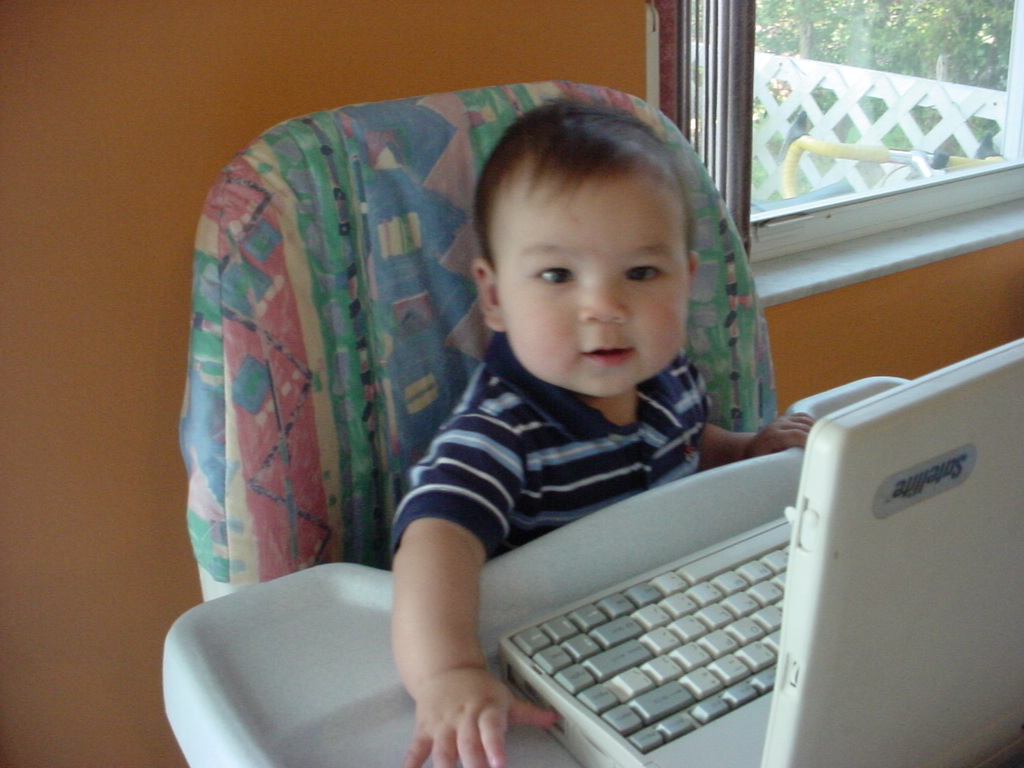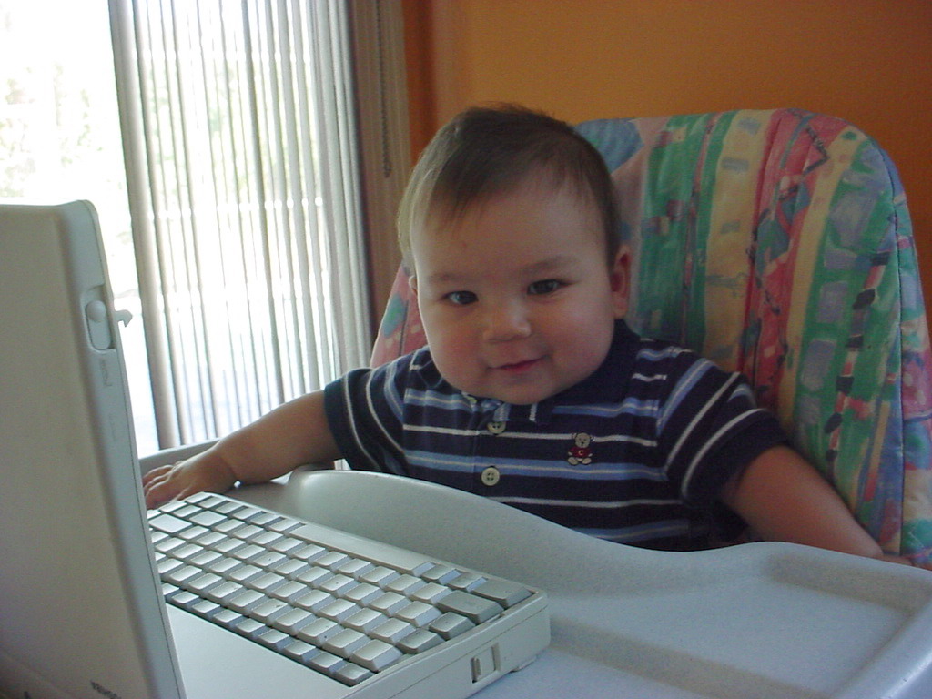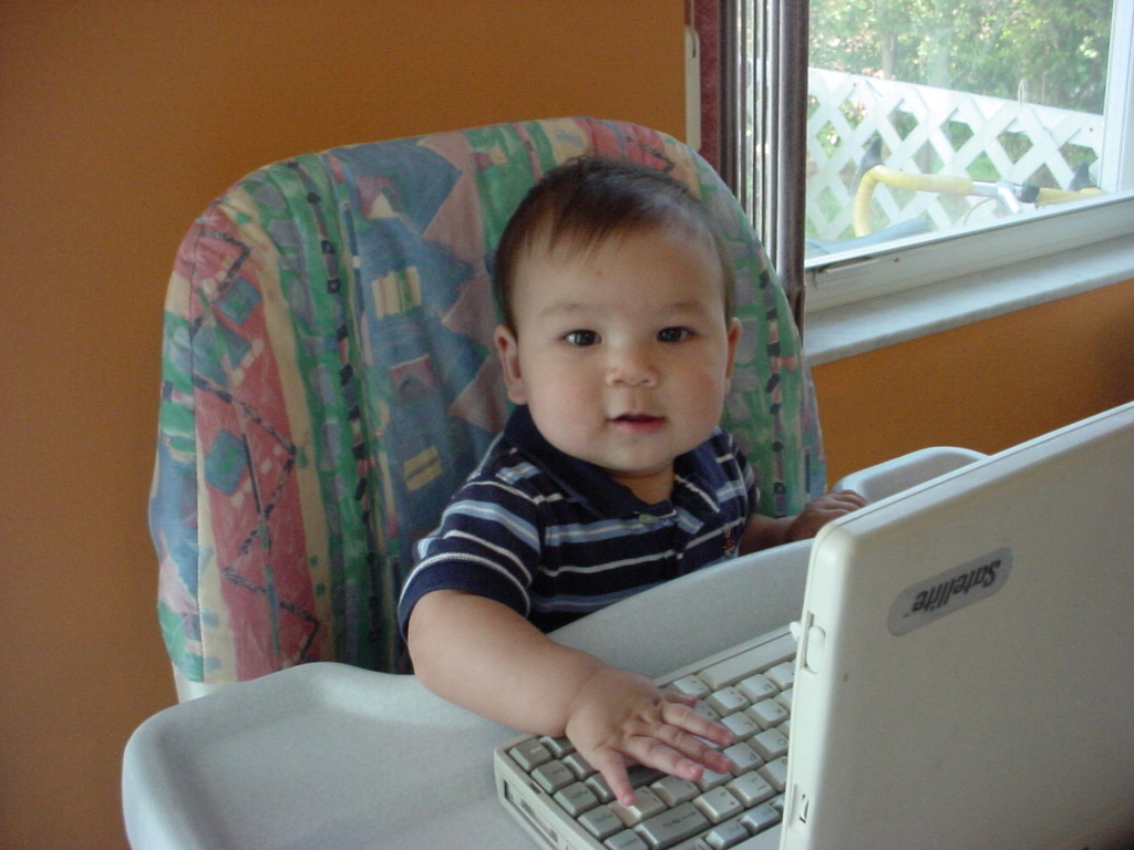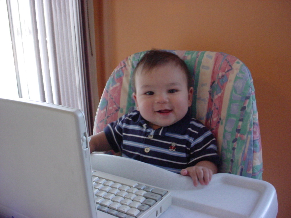 the Laptop December 27, 2005: Brit is a workaholic. He likes to do most of his work on his laptop. He has a wireless connection and likes to look for deals on baby stuff on eBay. If he’s not napping, you’ll see him online bidding on something. Like daddy, like son? Like mommy, like son? |