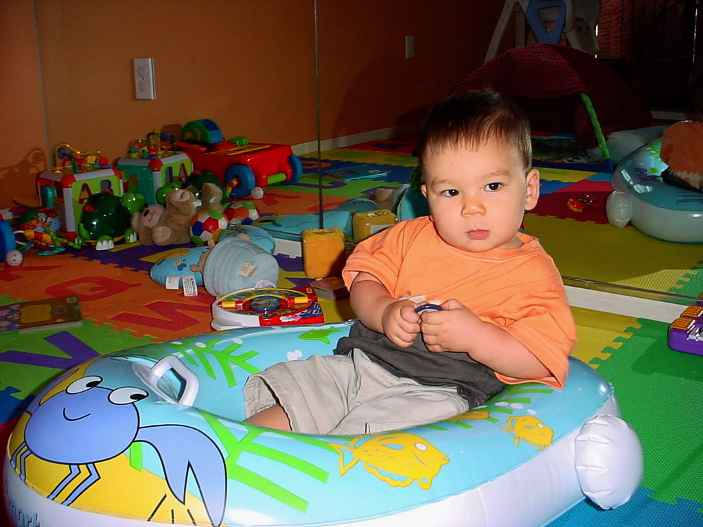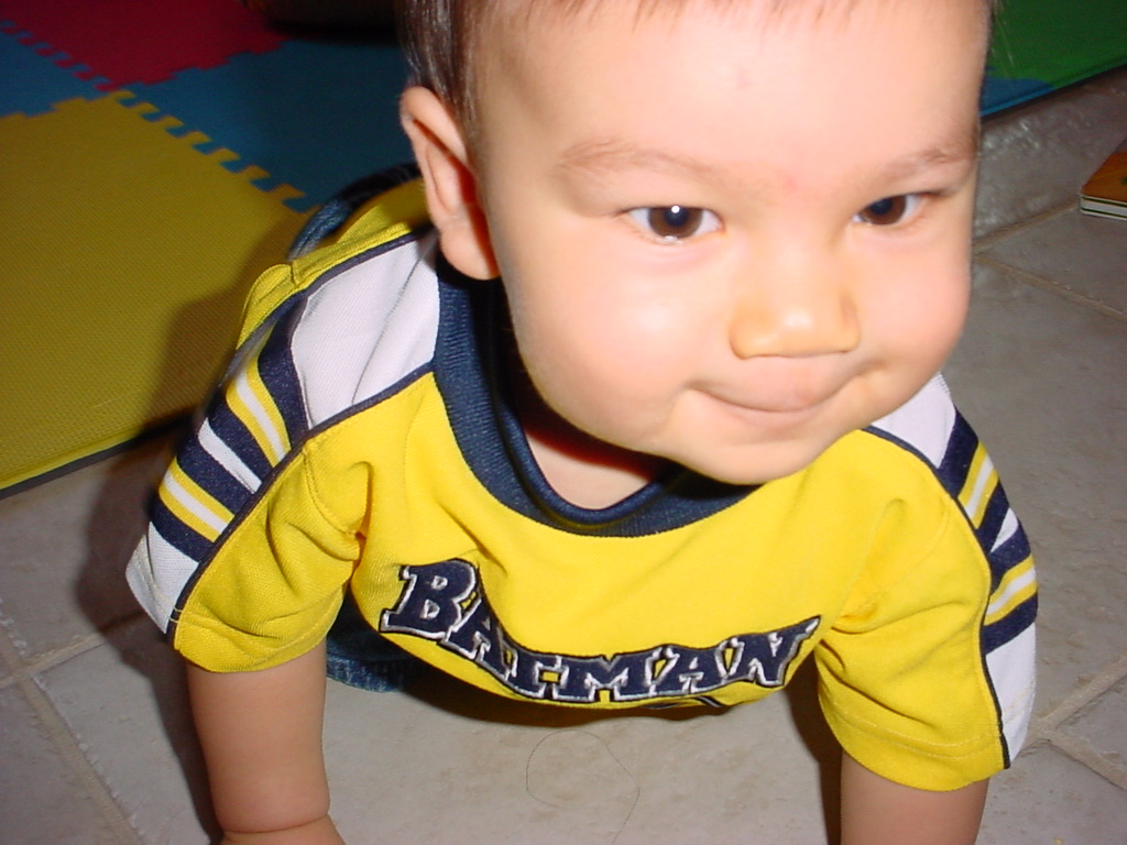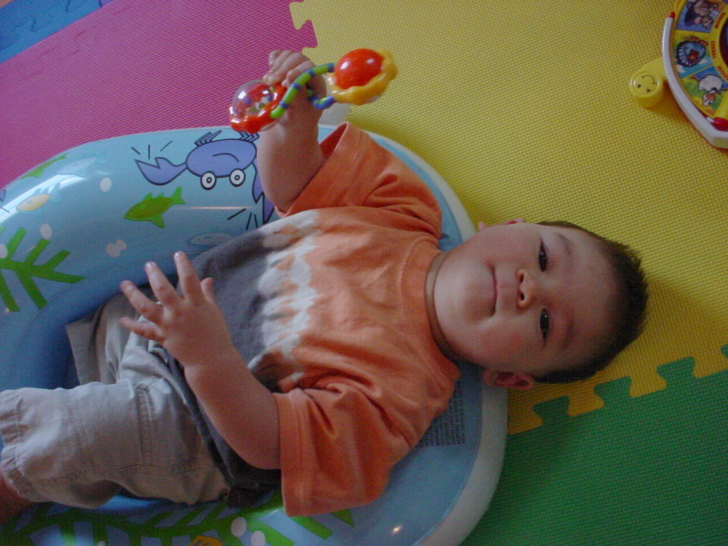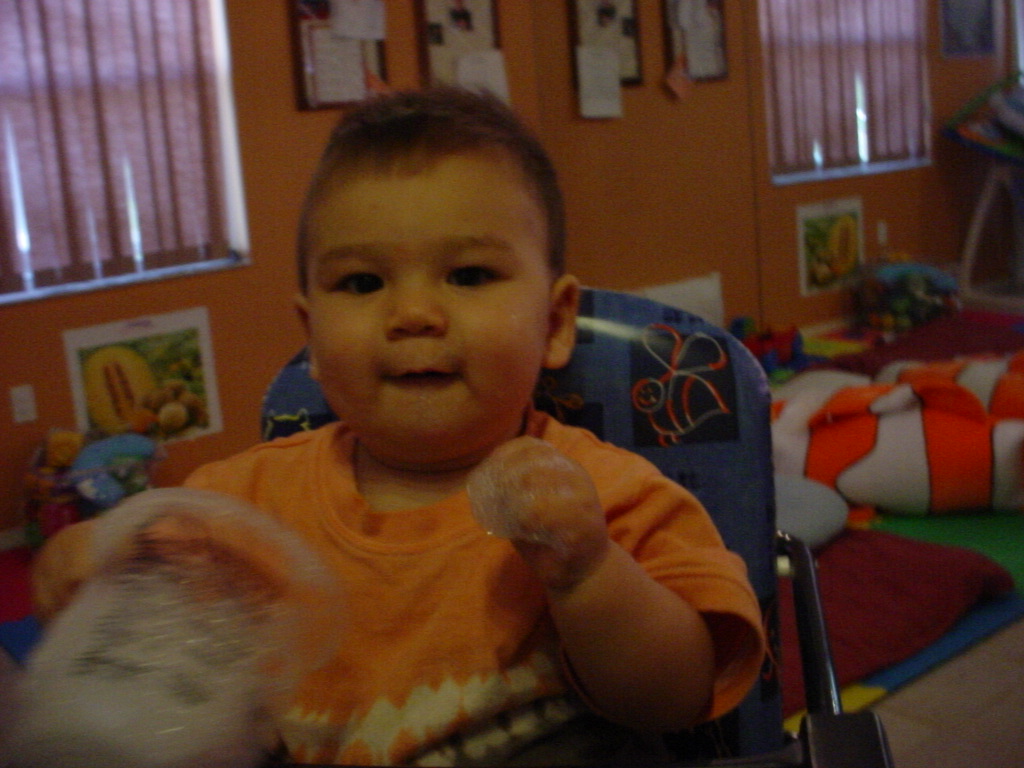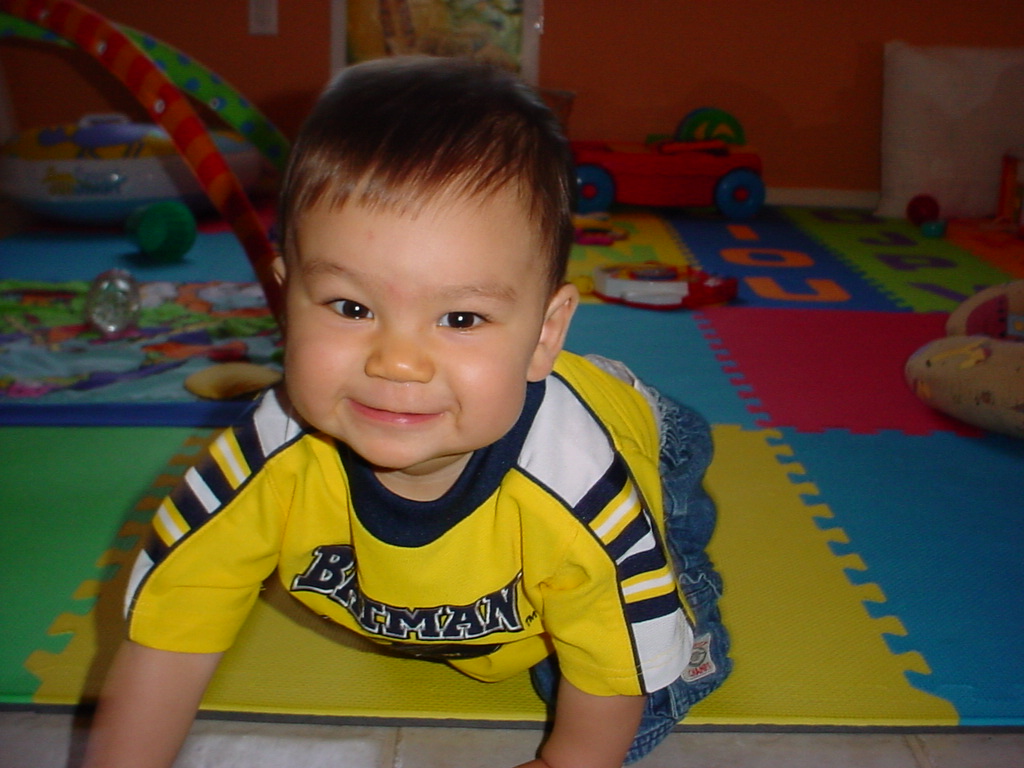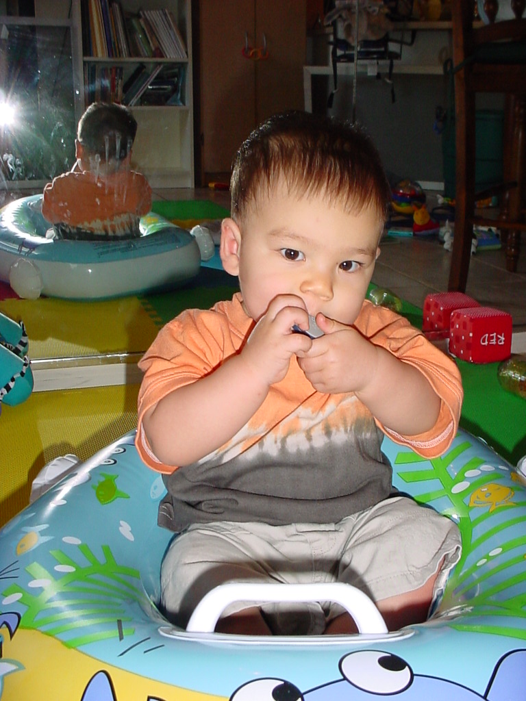 | Daddy's Note (March 25, 2006): Brit turned 10 months old on the 22nd. It seems like just yesterday that we got a positive pregnancy test. Okay, maybe it was... ;-). But seriously, we got a new gadget, the Archos Gmini 402 Camcorder and Video Player. I've added a video below, hosted by a great service called YouTube, and made with the Gmini. It's way cool! Anyways here Brit is watching his Baby Einstien. You can see the people in the background looking, too. He stays nice and mesmerized while we eat. Isn't technology great? |