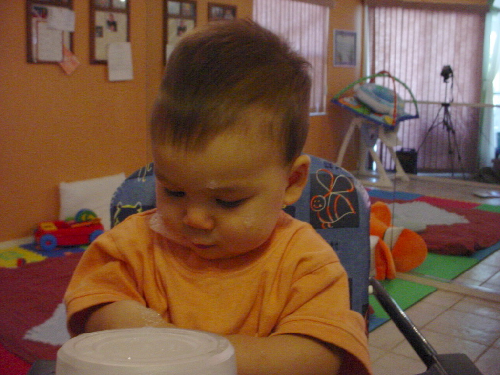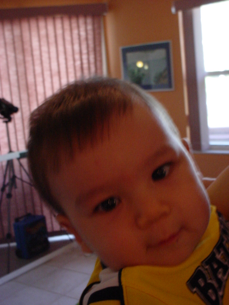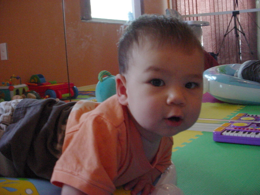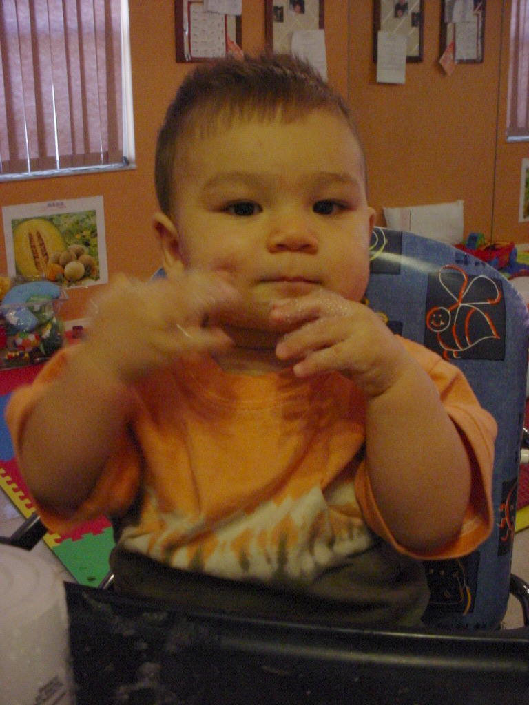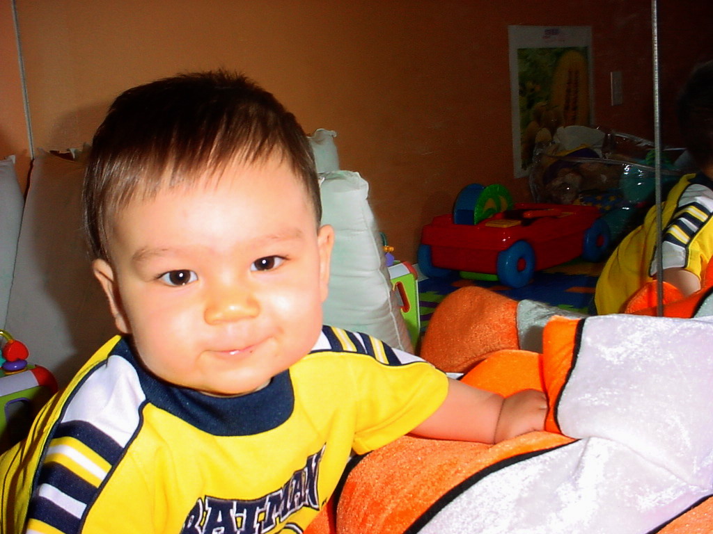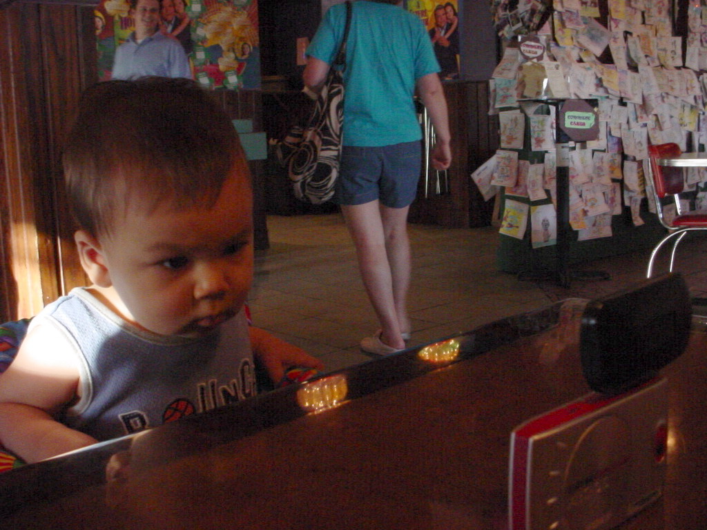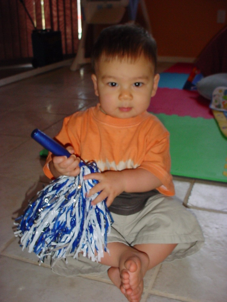 | Daddy's Note (March 25, 2006): Brit turned 10 months old on the 22nd. It seems like just yesterday that we got a positive pregnancy test. Okay, maybe it was... ;-). But seriously, we got a new gadget, the Archos Gmini 402 Camcorder and Video Player. I've added a video below, hosted by a great service called YouTube, and made with the Gmini. It's way cool! Anyways here Brit is watching his Baby Einstien. You can see the people in the background looking, too. He stays nice and mesmerized while we eat. Isn't technology great? |