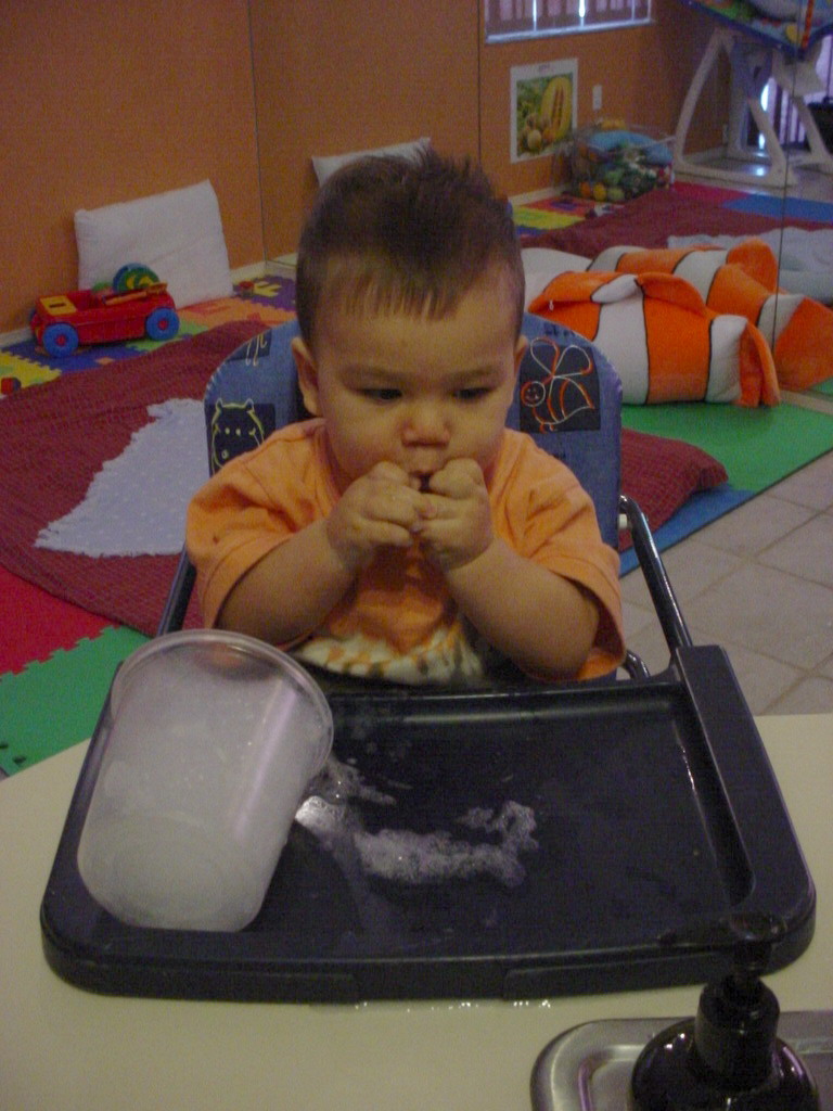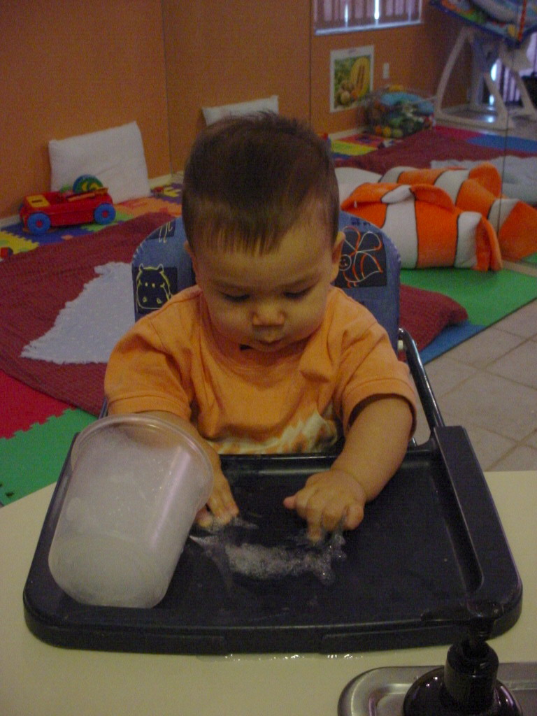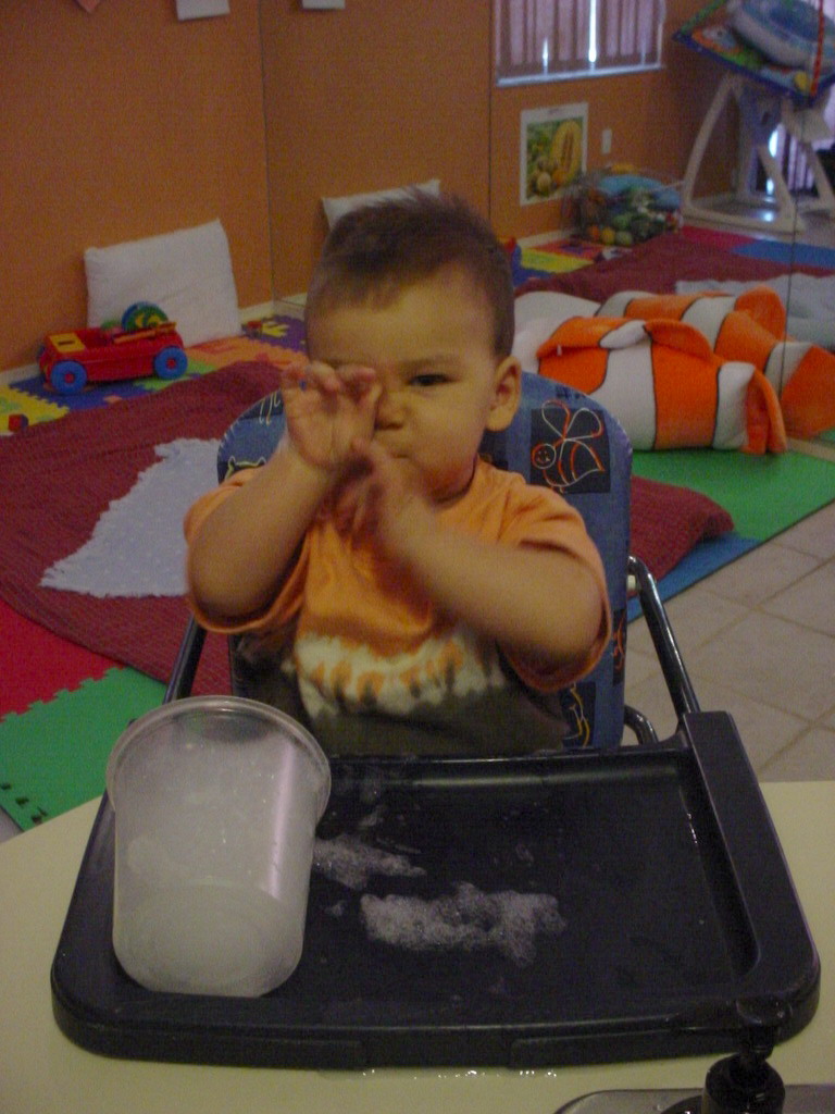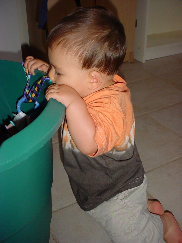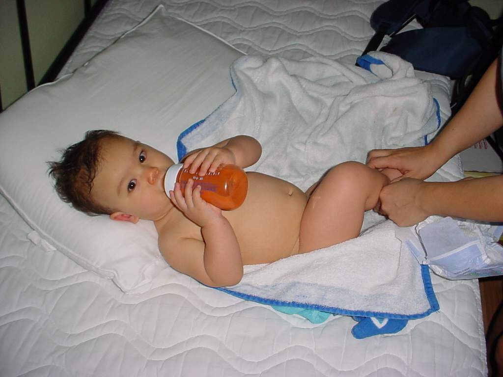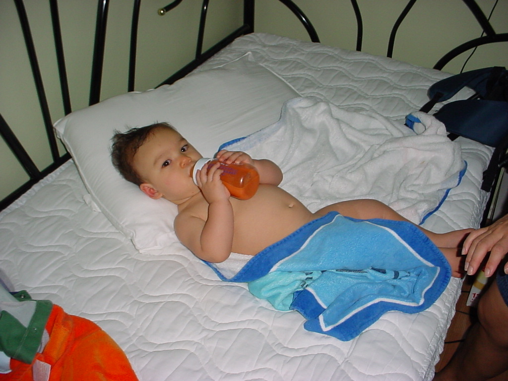 | Daddy's Note (March 25, 2006): Brit turned 10 months old on the 22nd. It seems like just yesterday that we got a positive pregnancy test. Okay, maybe it was... ;-). But seriously, we got a new gadget, the Archos Gmini 402 Camcorder and Video Player. I've added a video below, hosted by a great service called YouTube, and made with the Gmini. It's way cool! Anyways here Brit is watching his Baby Einstien. You can see the people in the background looking, too. He stays nice and mesmerized while we eat. Isn't technology great? |