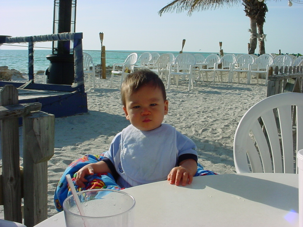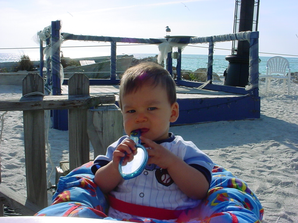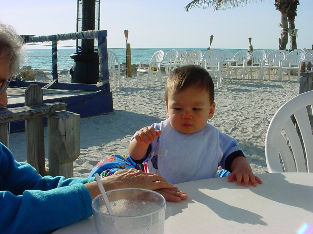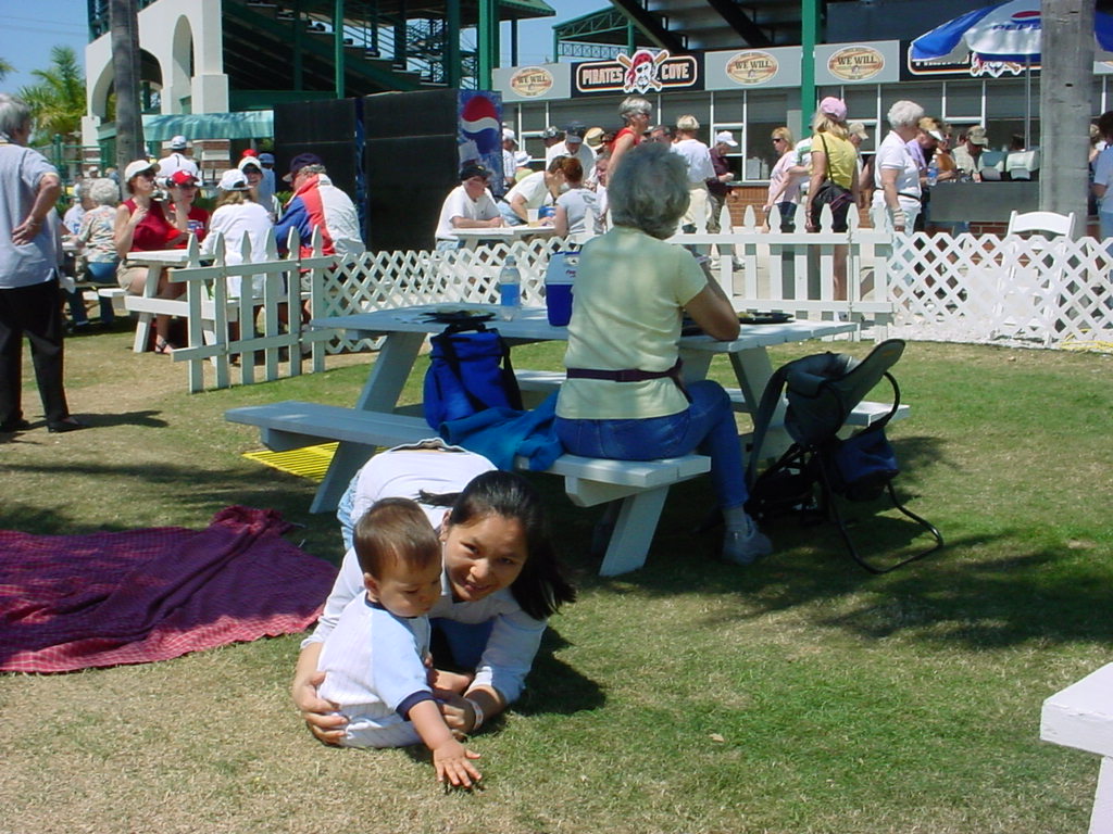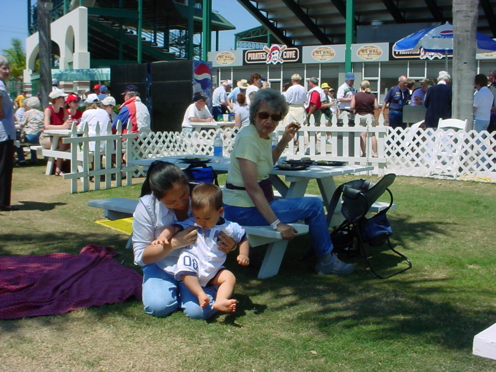 Daddy's Note April 6, 2006: Brit went to his first baseball game at McKechnie Field, watching the Pittsburgh Pirates kick the butts of the Tampa Bay Devil Rays. It was a special day for Oma (Brit's Dutch Grandma) whose birthday we were celebrating. Oma hadn't gone to a baseball game for many years. Afterwards we took Oma out to the Beach House for an early dinner. I added some random shots toward the end. You've got to check out the Brit bath videos, too. One in the sink and another in the tub. Mommy's Note April 6, 2006: We spent more time at the air filled fun house than inside the ball park. Brit was a little scared of the cheering and clapping. We had a great time anyway. Afterwards, we went to the Beach House for dinner. Brit enjoys a full cup of ice. He's watching his calorie intake. He doesn't want to be a chubby-cheeked baby anymore. |