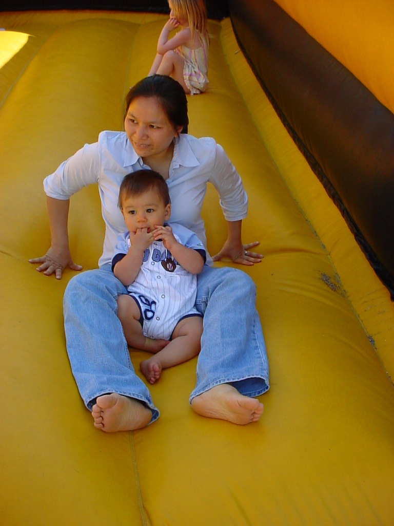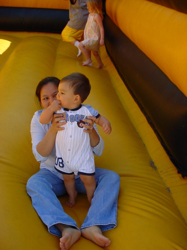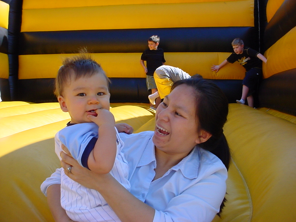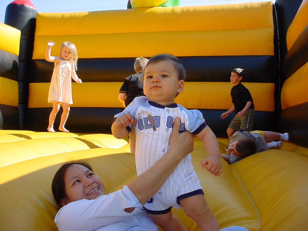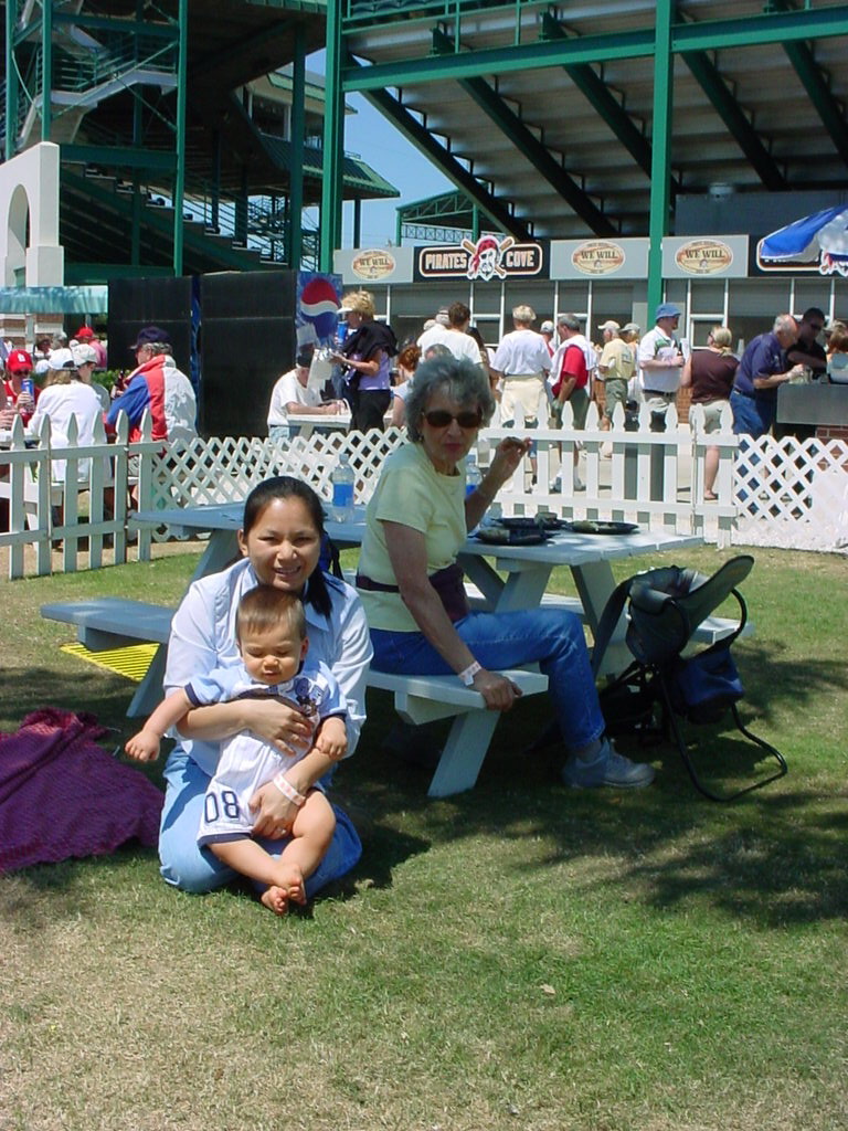 Daddy's Note April 6, 2006: Brit went to his first baseball game at McKechnie Field, watching the Pittsburgh Pirates kick the butts of the Tampa Bay Devil Rays. It was a special day for Oma (Brit's Dutch Grandma) whose birthday we were celebrating. Oma hadn't gone to a baseball game for many years. Afterwards we took Oma out to the Beach House for an early dinner. I added some random shots toward the end. You've got to check out the Brit bath videos, too. One in the sink and another in the tub. Mommy's Note April 6, 2006: We spent more time at the air filled fun house than inside the ball park. Brit was a little scared of the cheering and clapping. We had a great time anyway. Afterwards, we went to the Beach House for dinner. Brit enjoys a full cup of ice. He's watching his calorie intake. He doesn't want to be a chubby-cheeked baby anymore. |